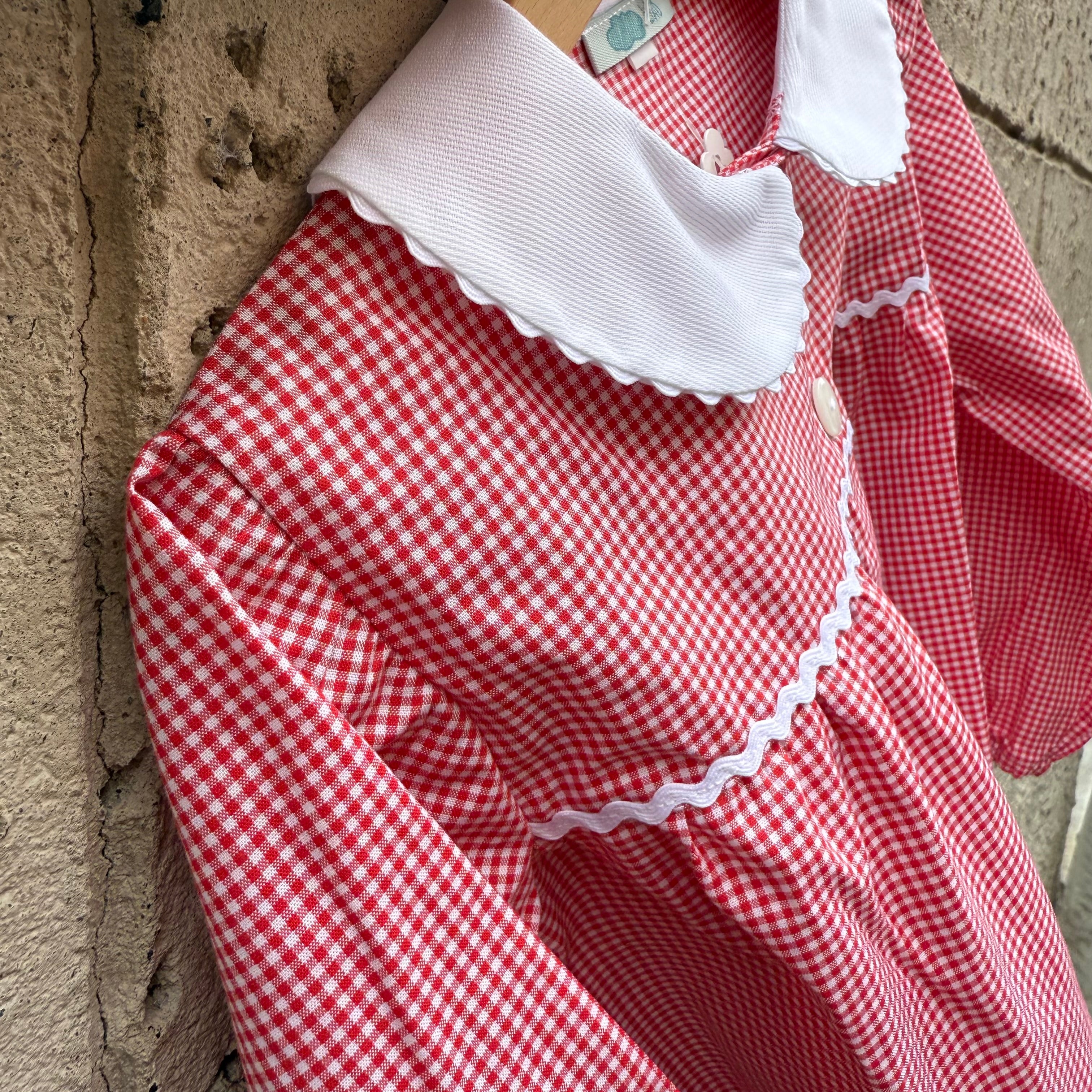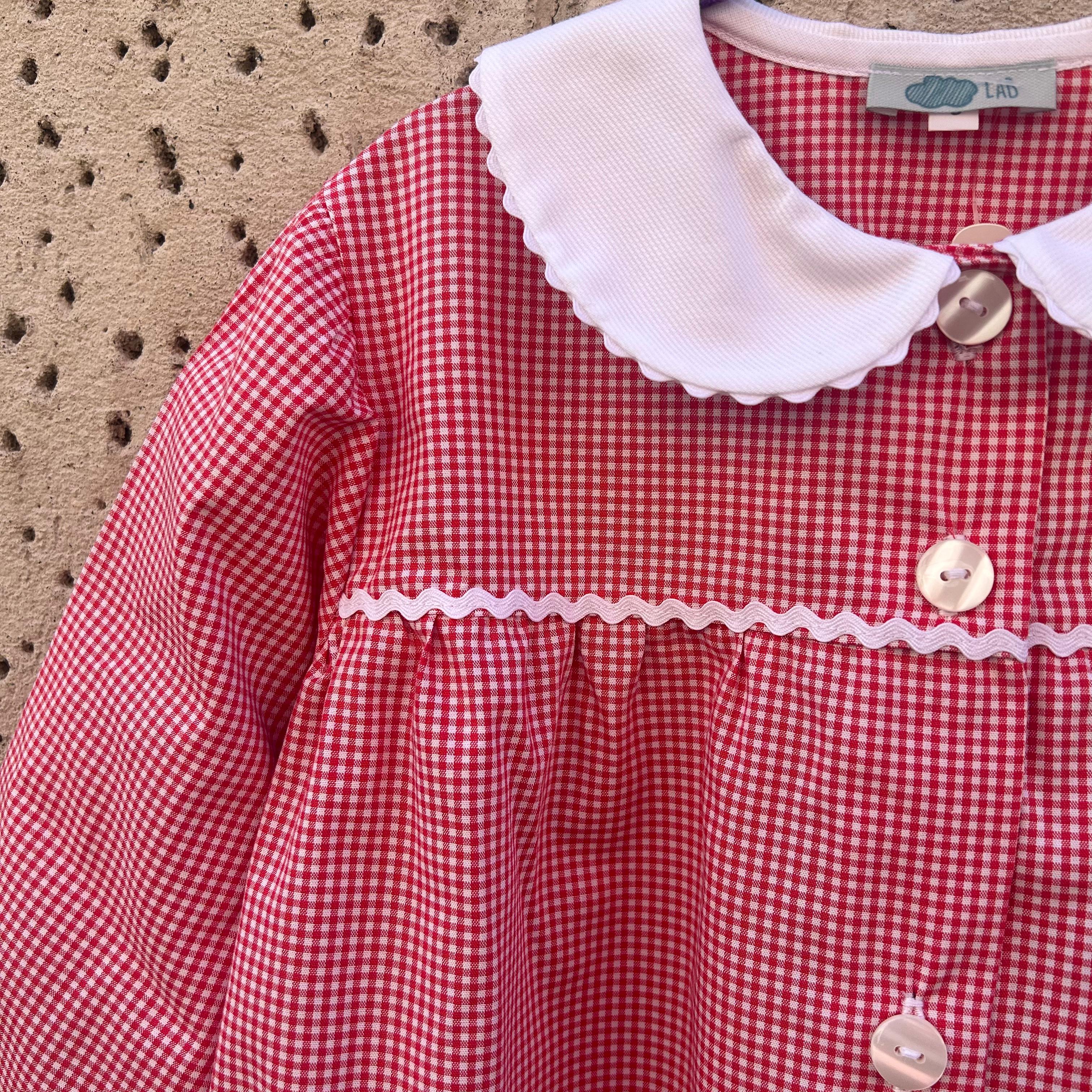 Grembiule LAB vichy rosso e bianco rifinito con serpentina