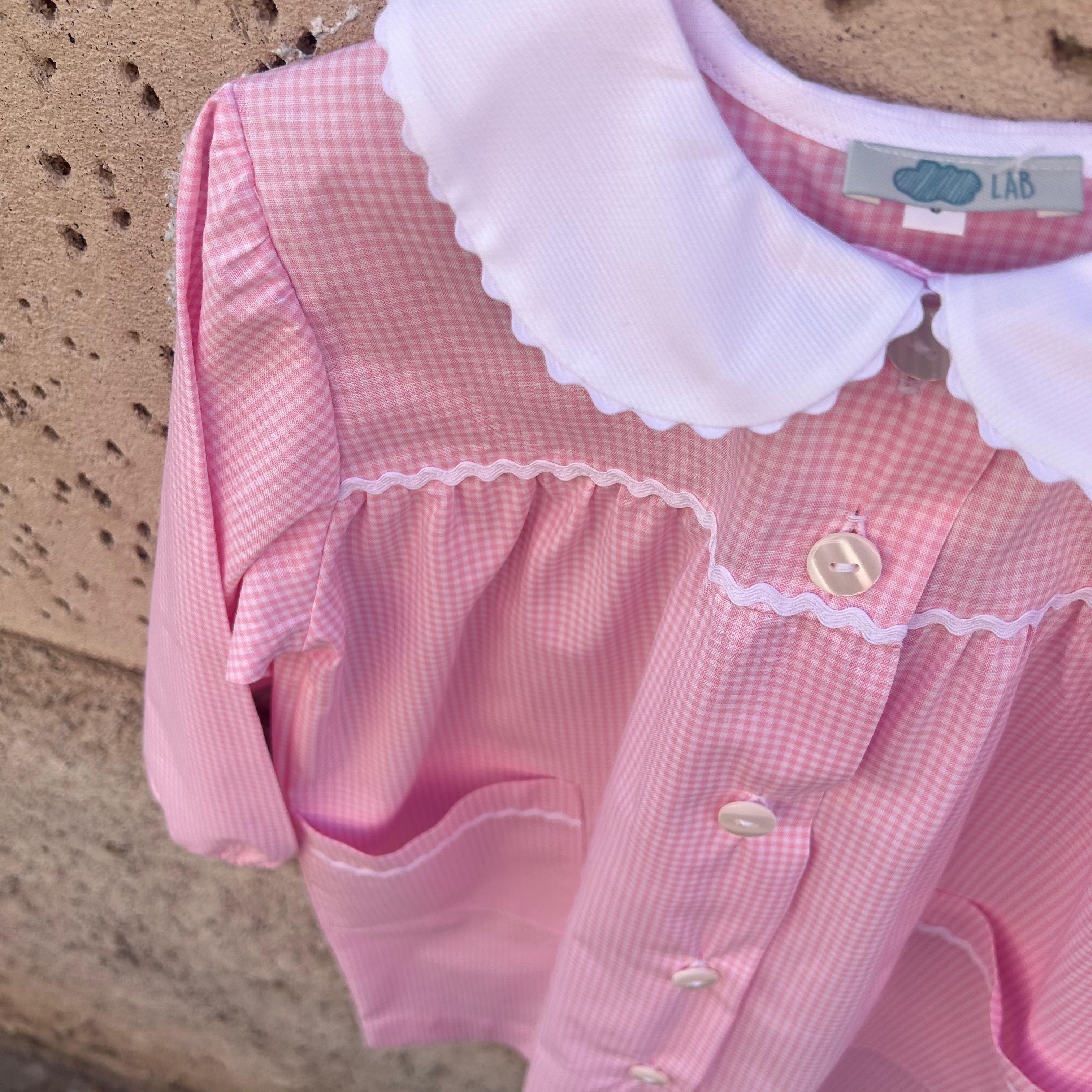 Grembiule LAB vichy rosa e bianco rifinito con serpentina