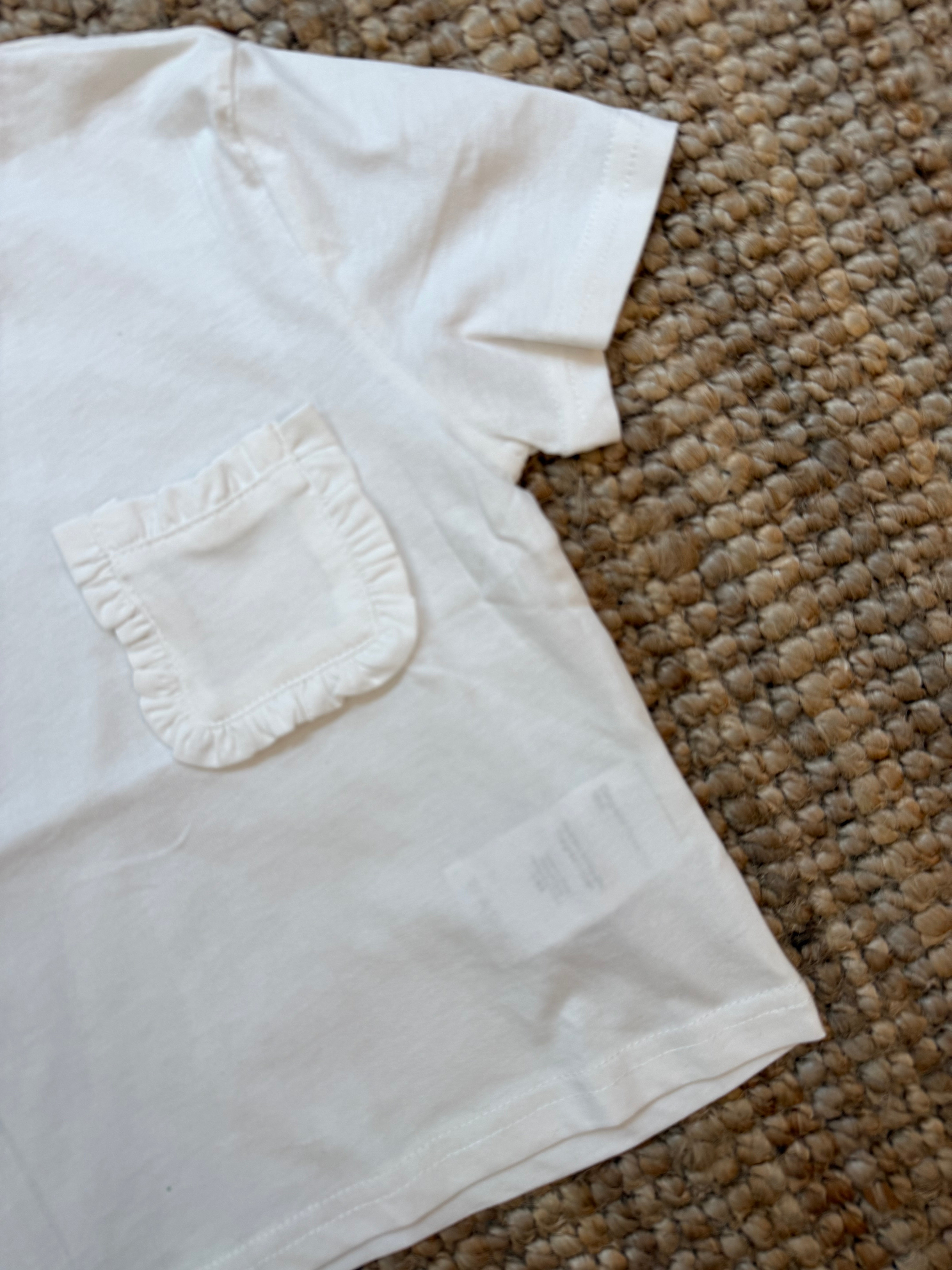 T-shirt cropped con taschino frill