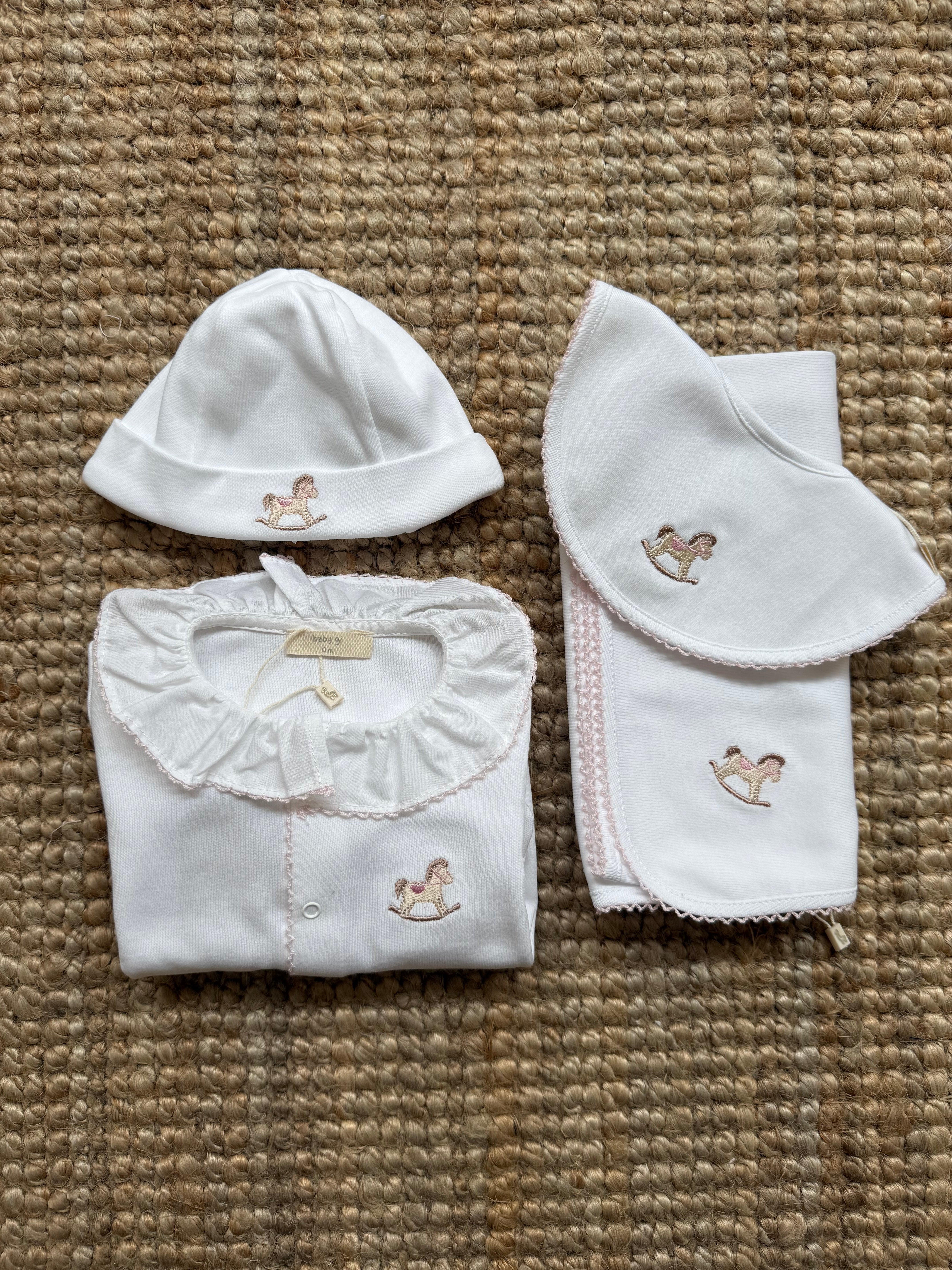 Tutina cavallino a dondolo ricamato dettagli rosa RH53GM Baby Gi