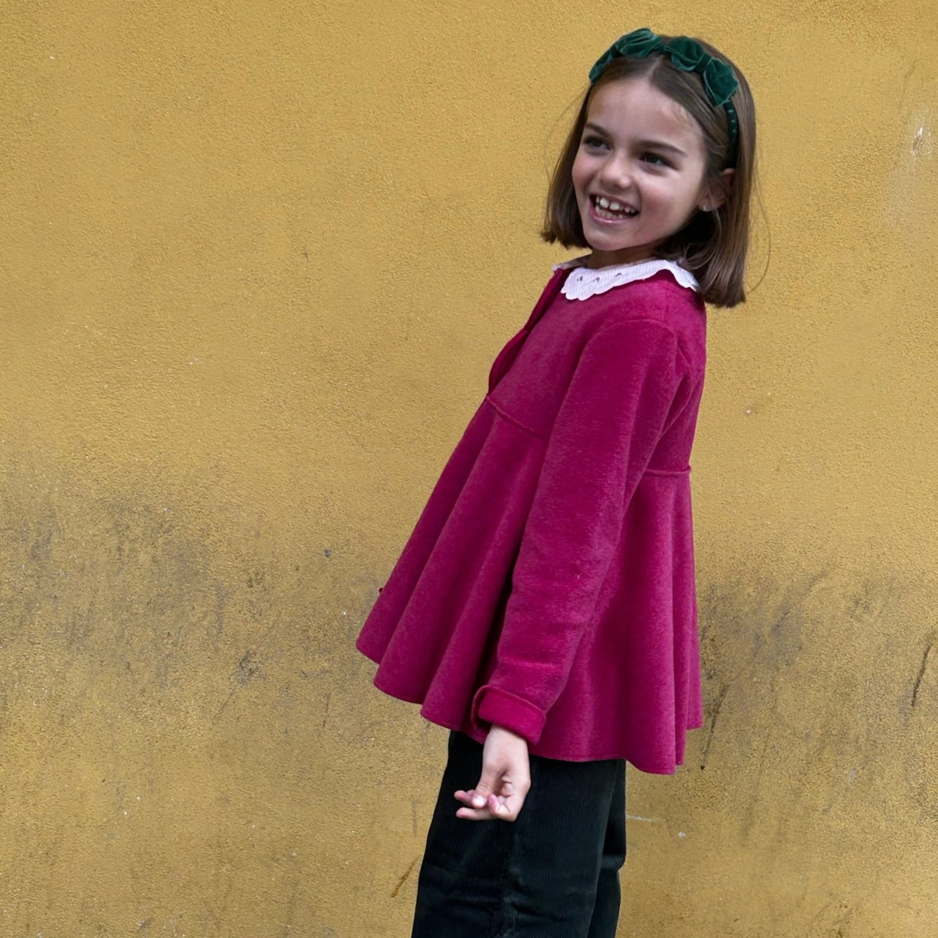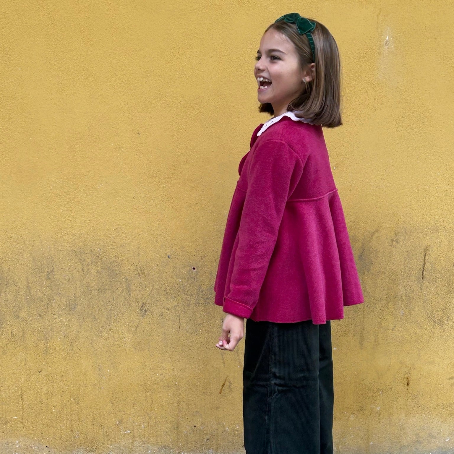 Cardigan girocollo taglio impero con dettaglio abbottonatura petalo