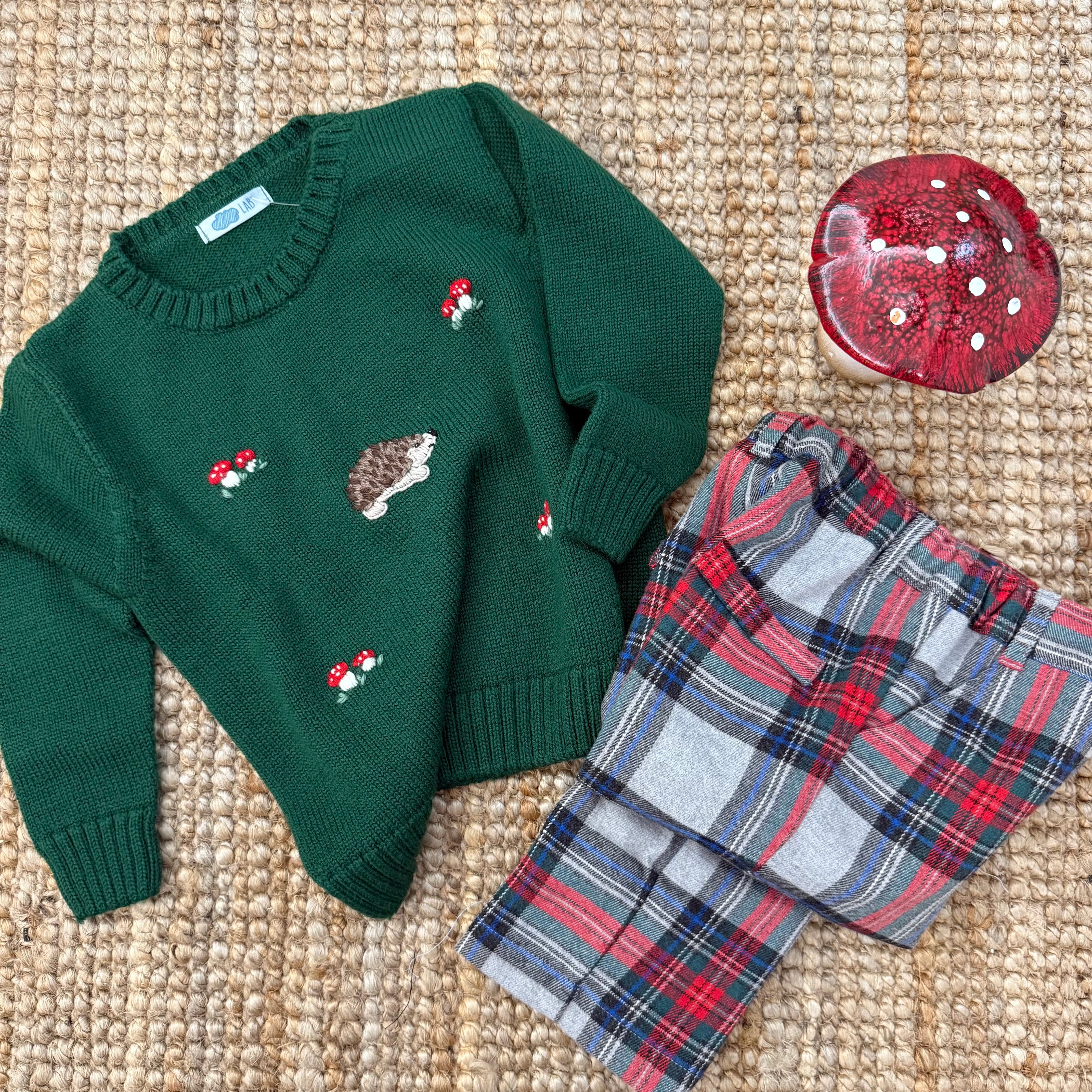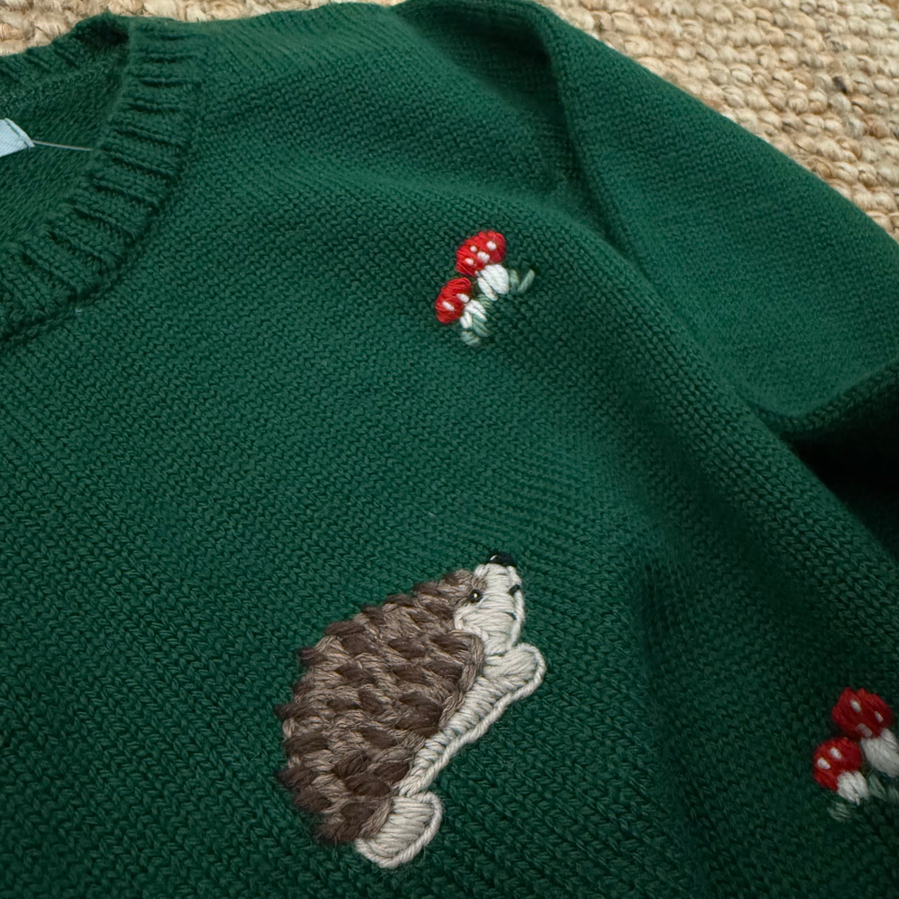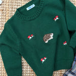 Maglioncino girocollo verde ricamo riccio Mi Lucero x LA NUVOLA LAB I24113