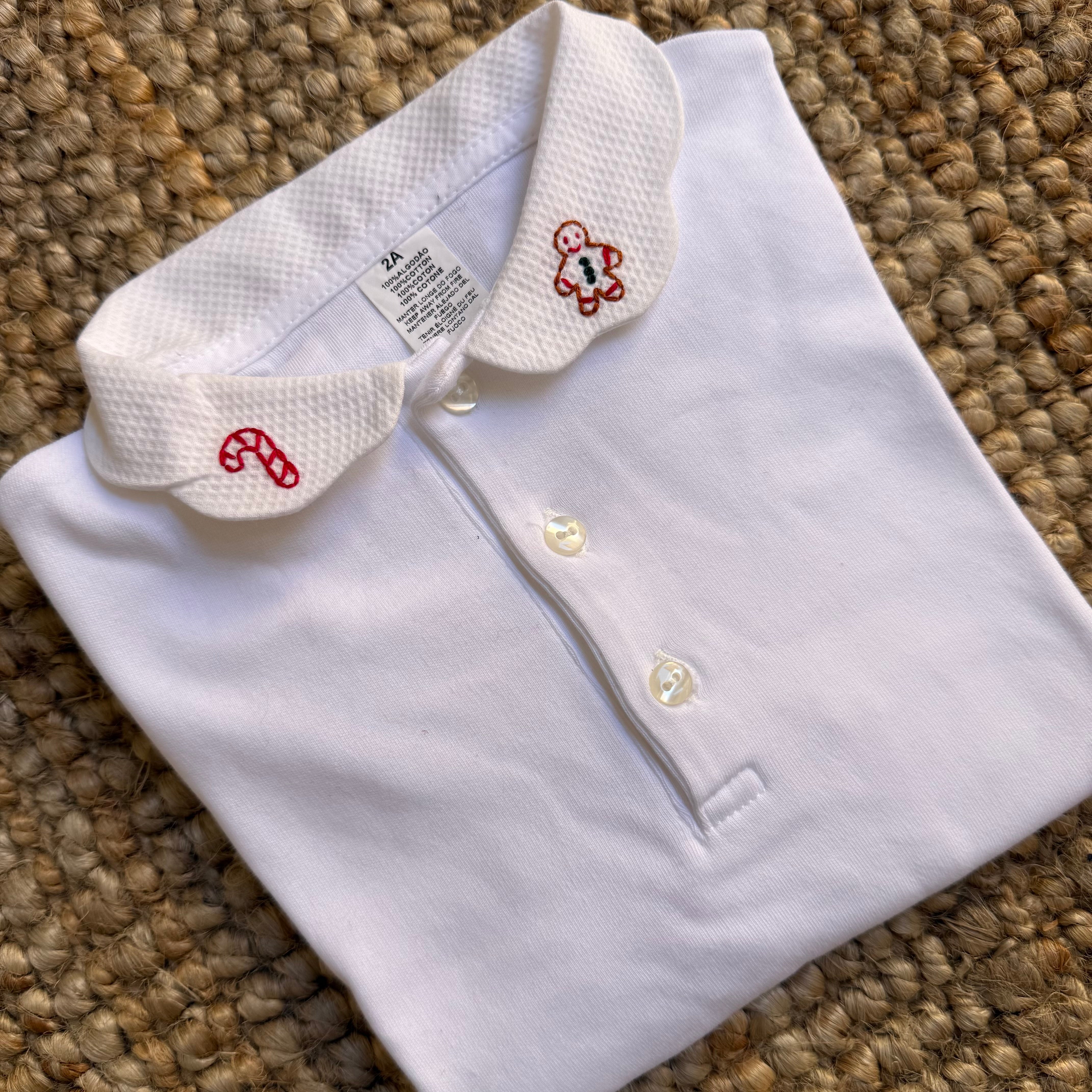 Polo in jersey di cotone manica lunga con colletto piquet petalo ricamato a mano: per le più piccine e per le più grandicelle!