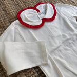 Polo in jersey di cotone manica lunga color latte con colletto profilato con frill rosso