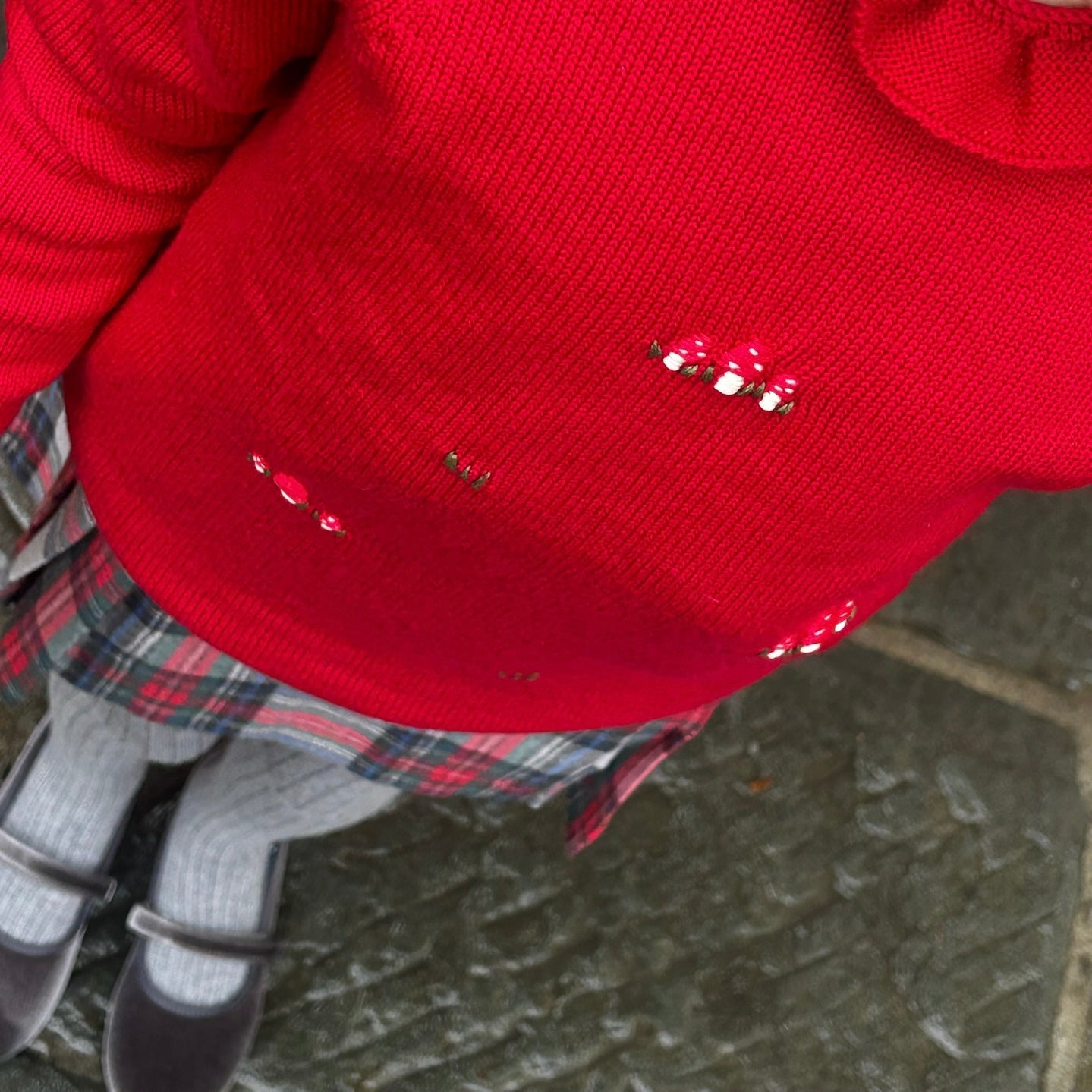 Maglioncino rosso collo frill ricamo autunno Mi Lucero x LA NUVOLA LAB I24113
