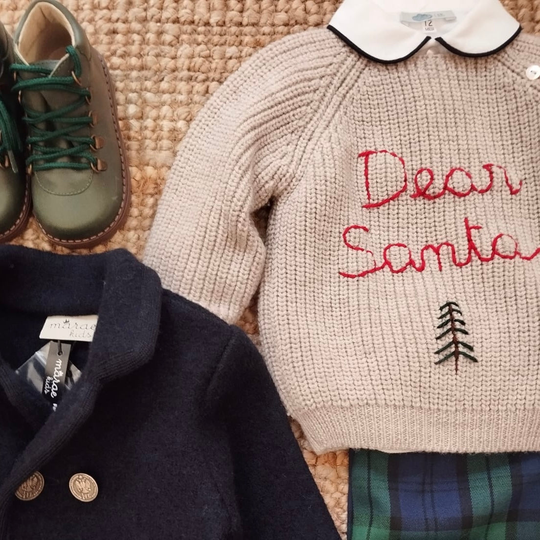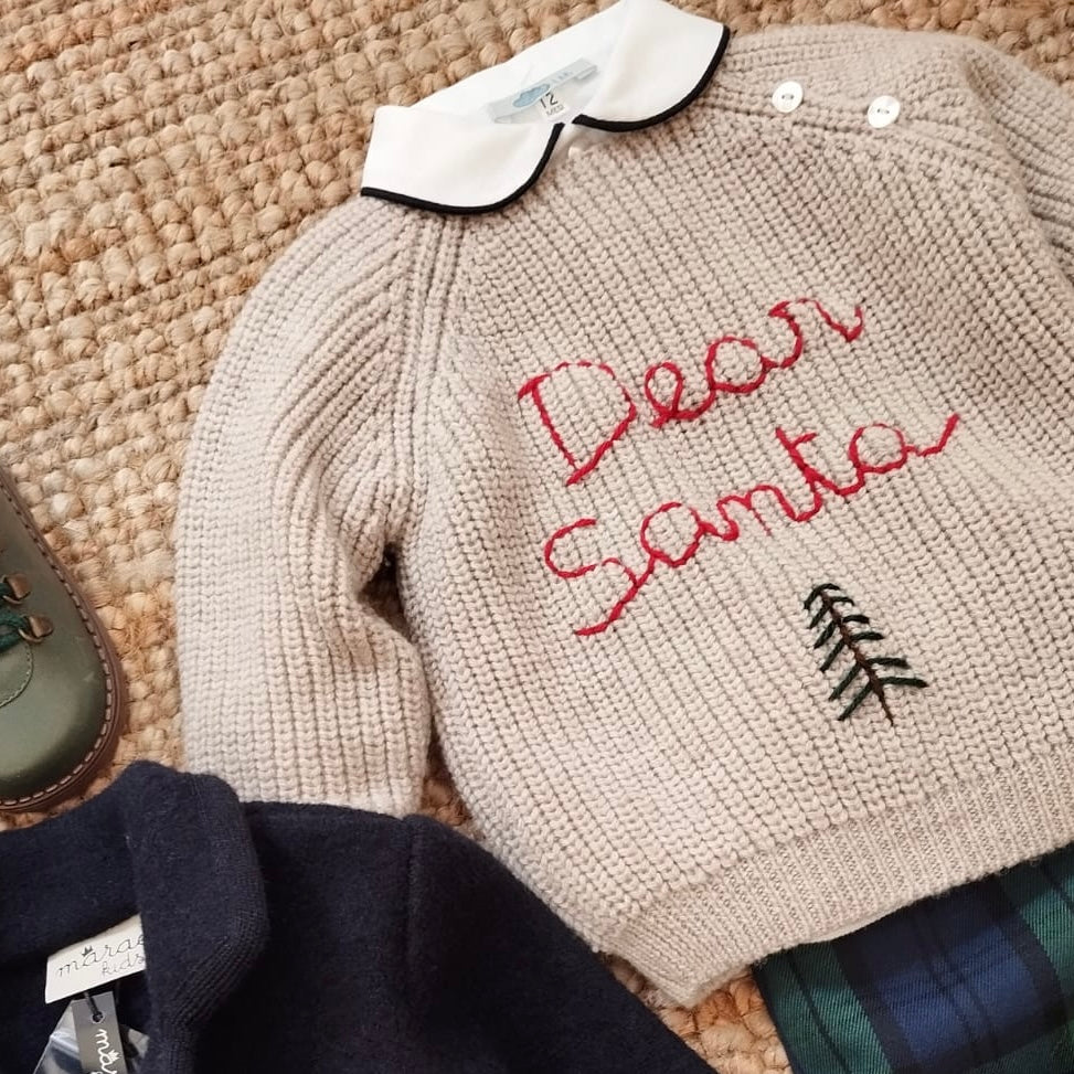 Maglione tortora maglia grossa ricamo DEAR SANTA Mi Lucero x LA NUVOLA LAB I25316