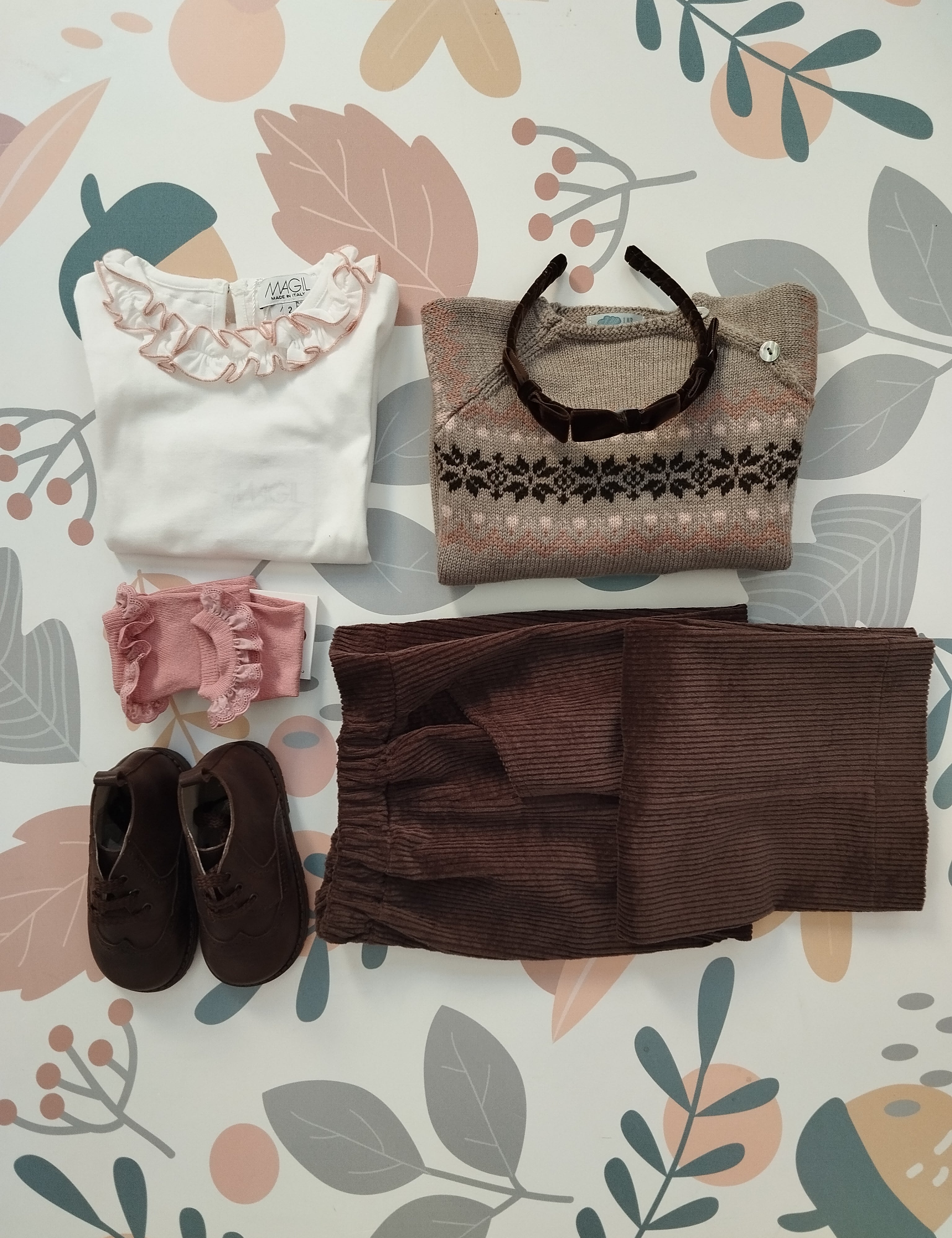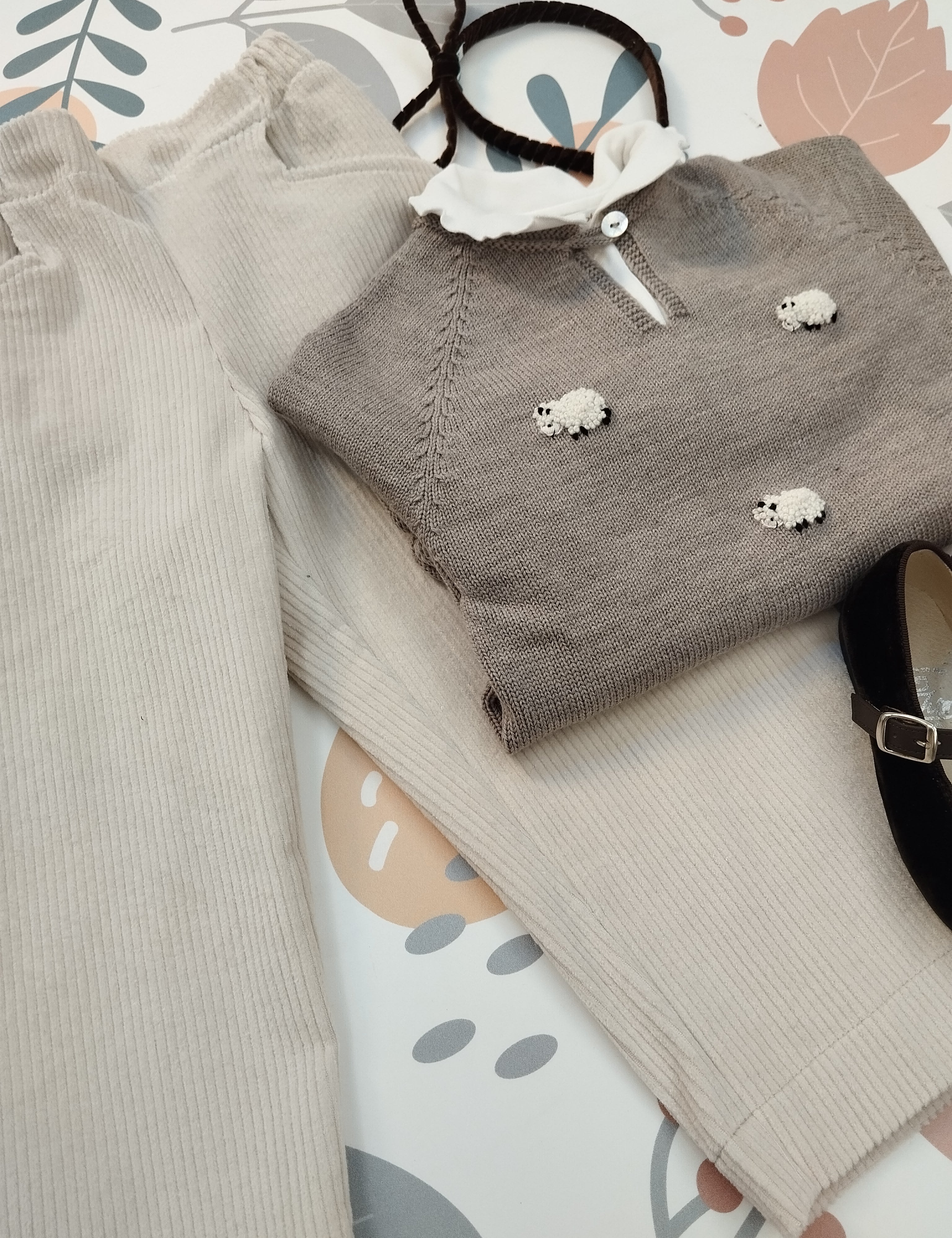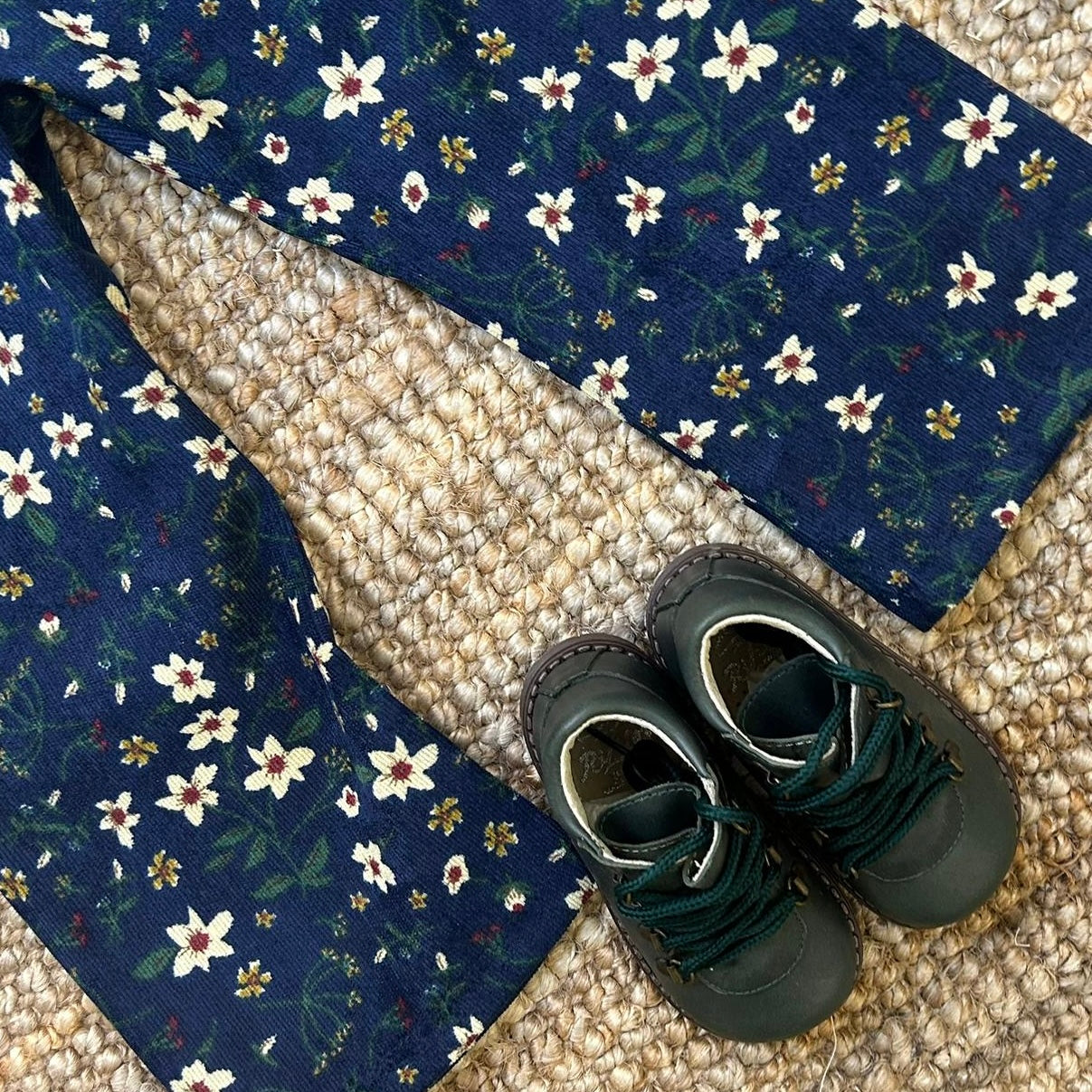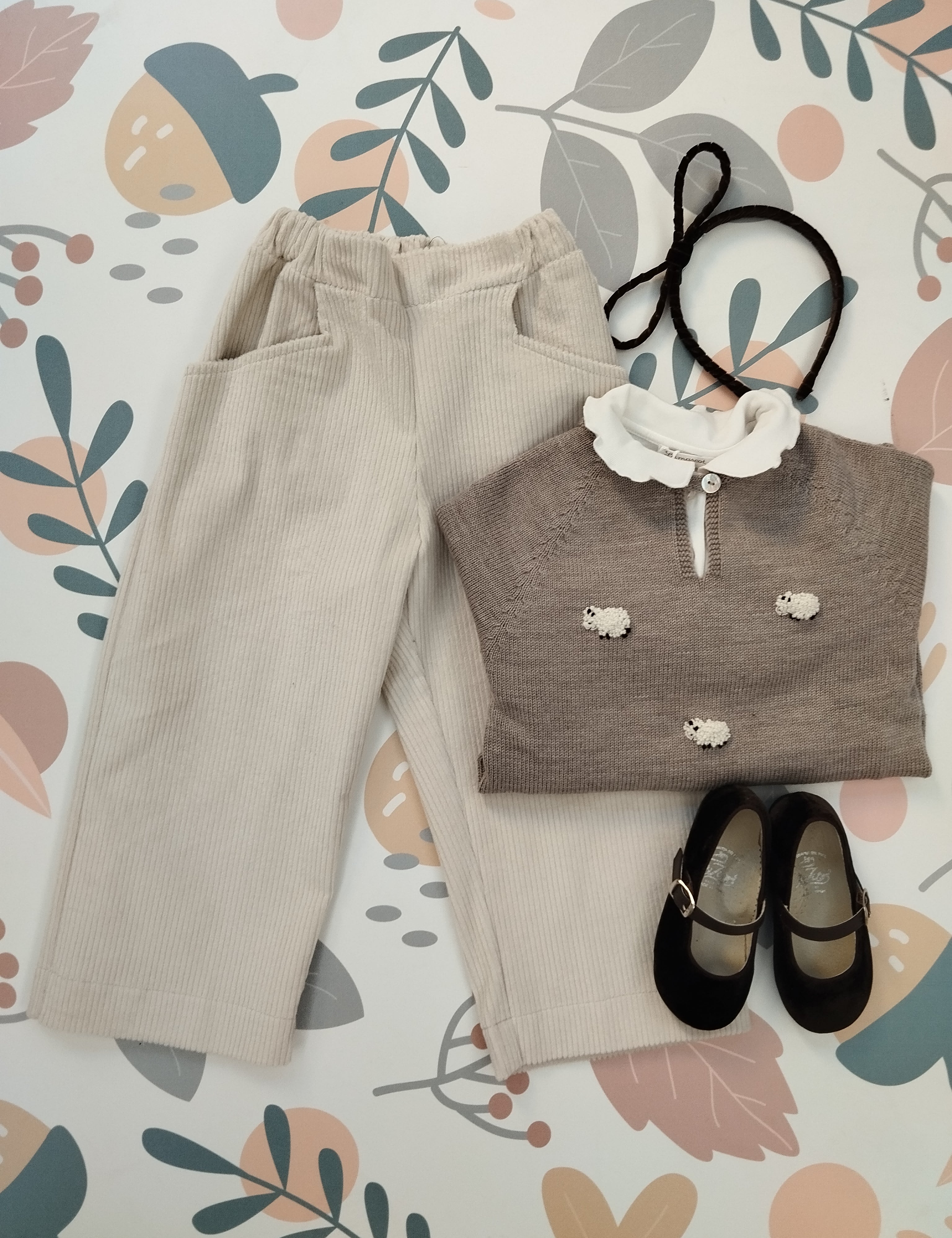 Pantalone LAB velluto a costine stampa fiori base carta da zucchero