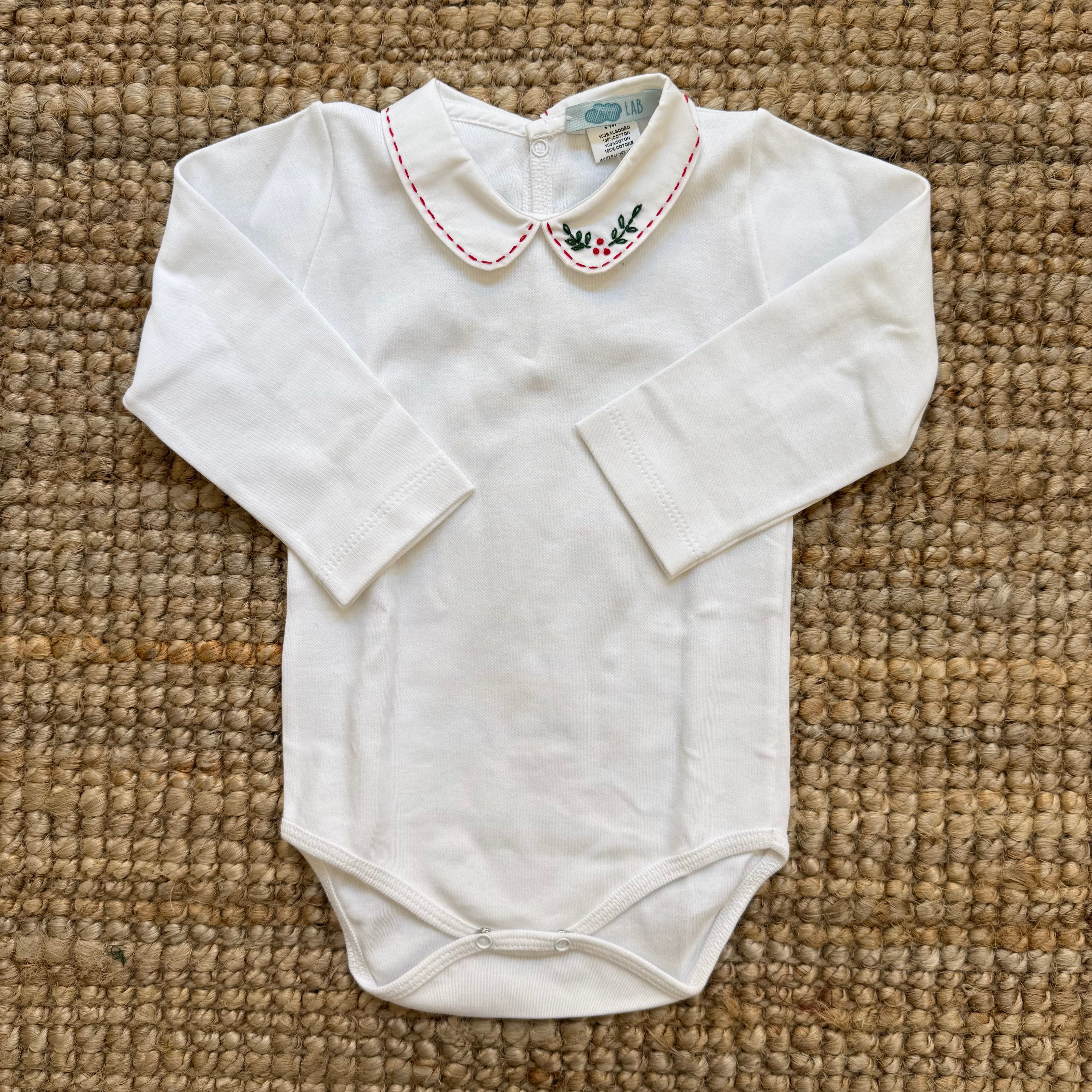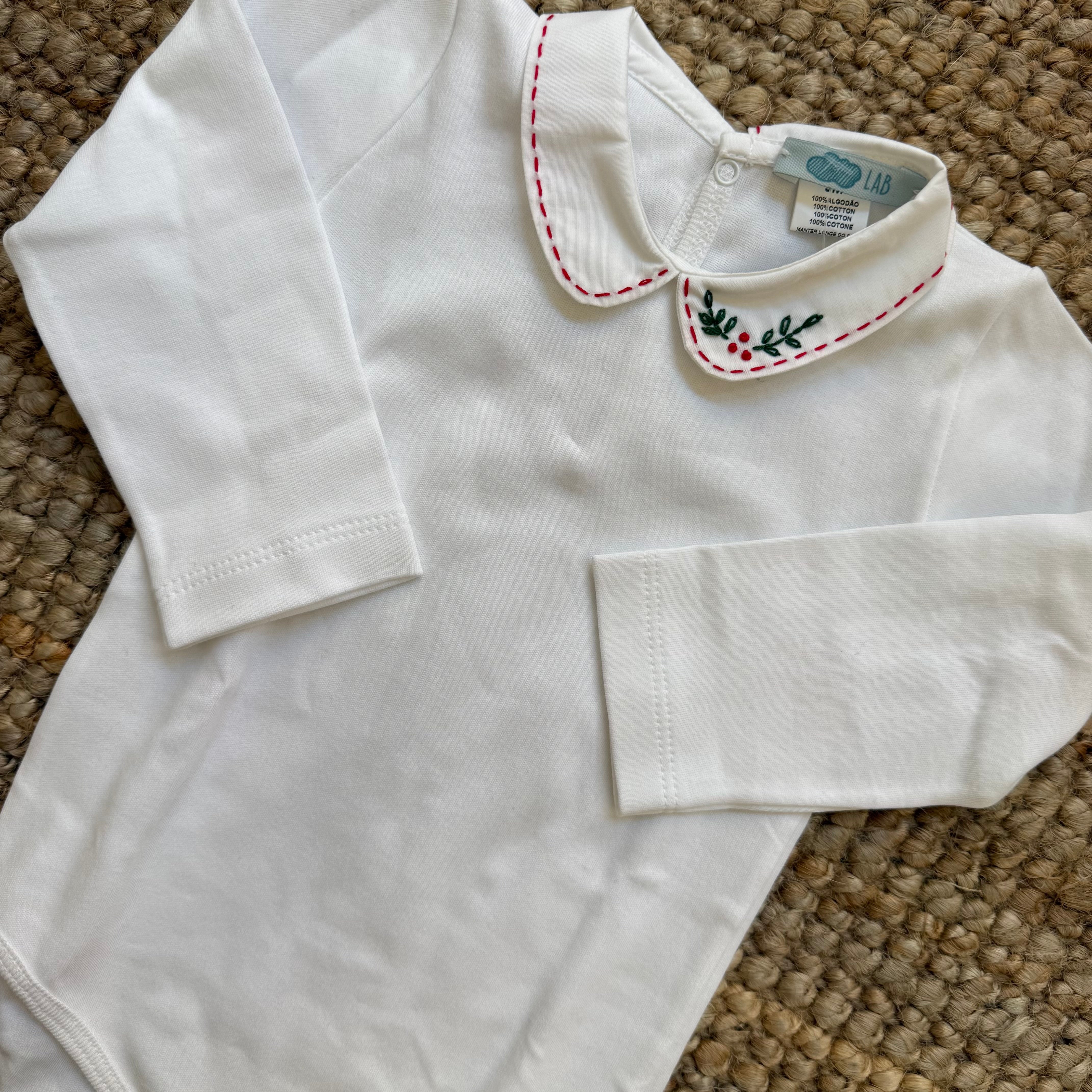 Body LAB Natale con colletto stondato ricamato con agrifoglio manica lunga