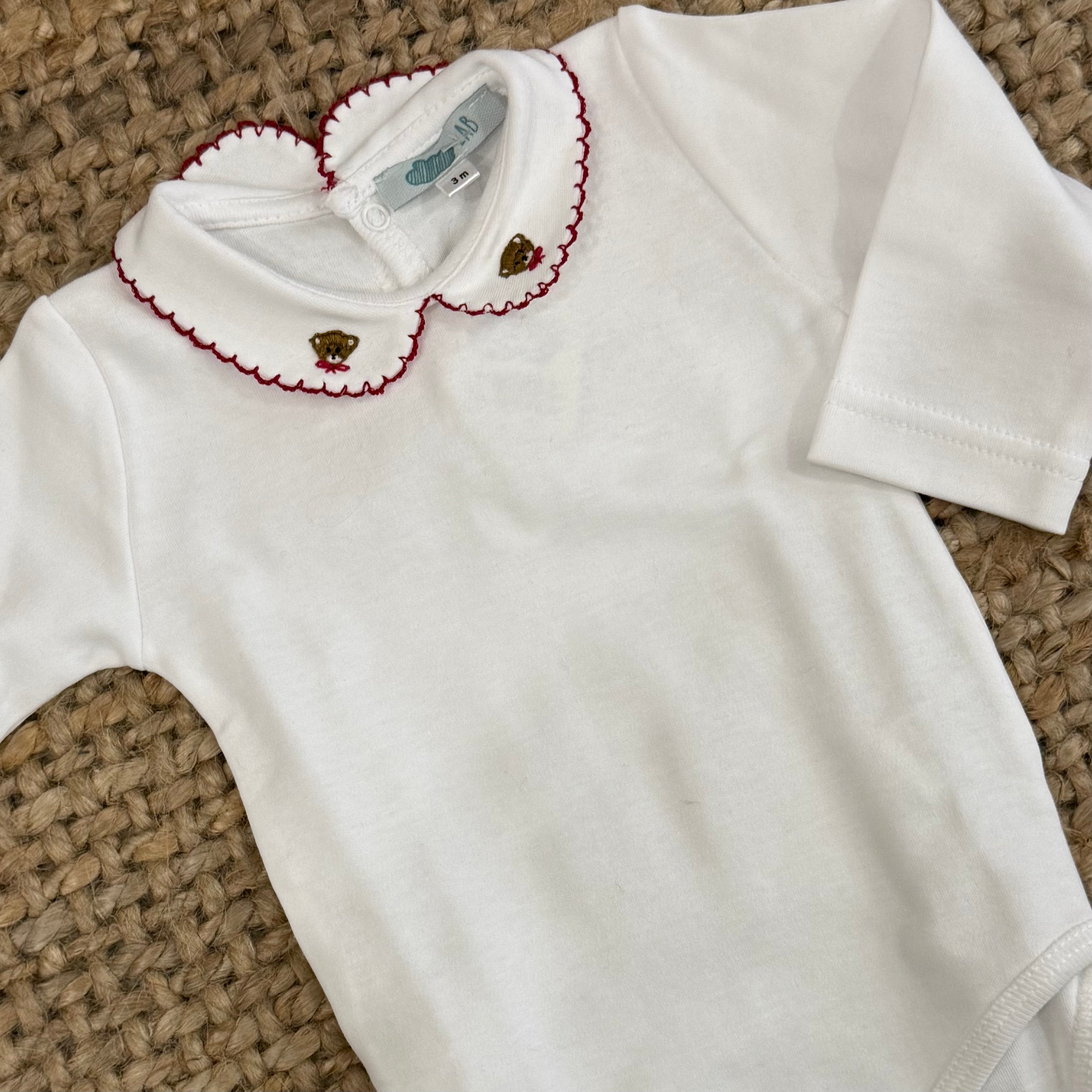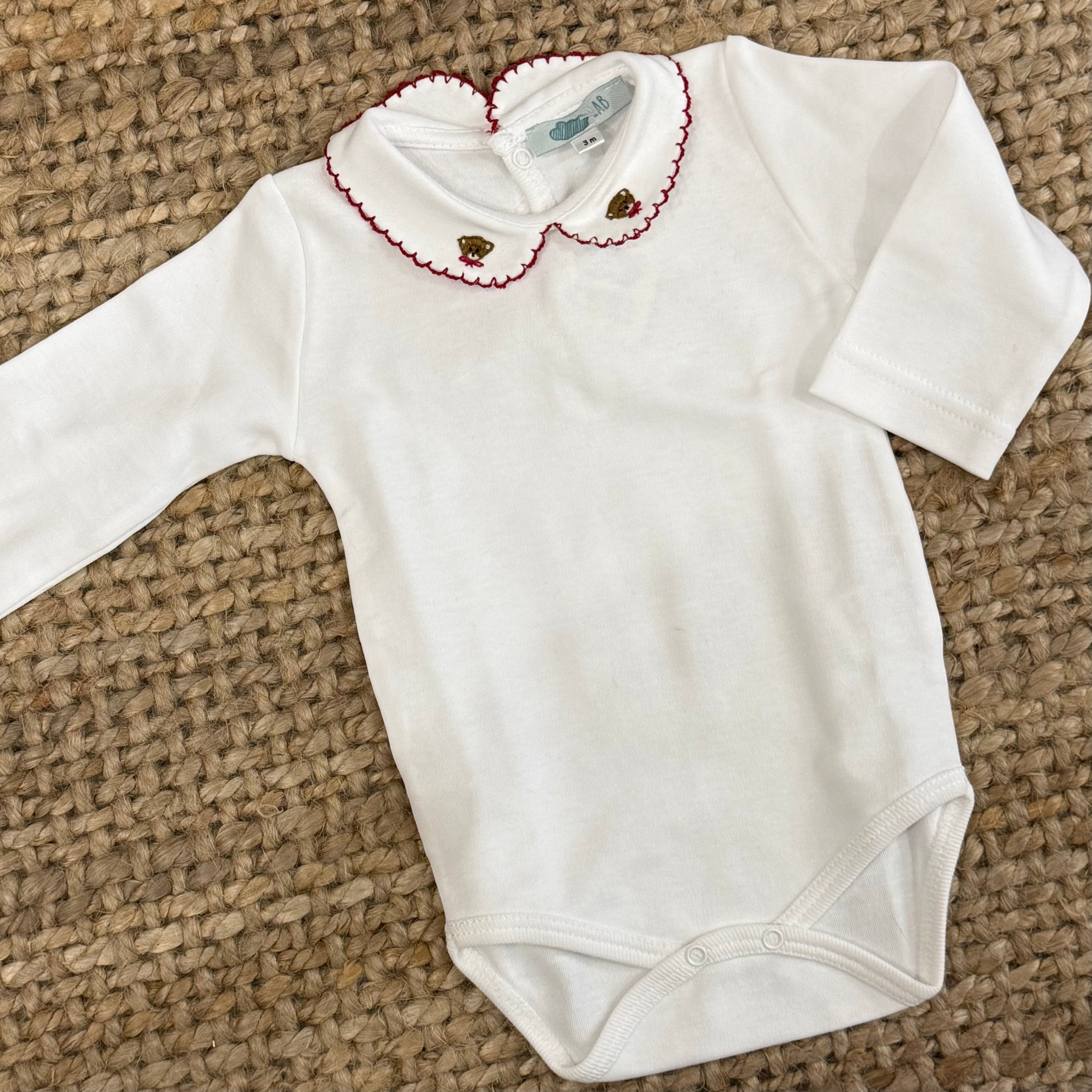 Body LAB Natale con colletto petalo ricamato a pois manica lunga