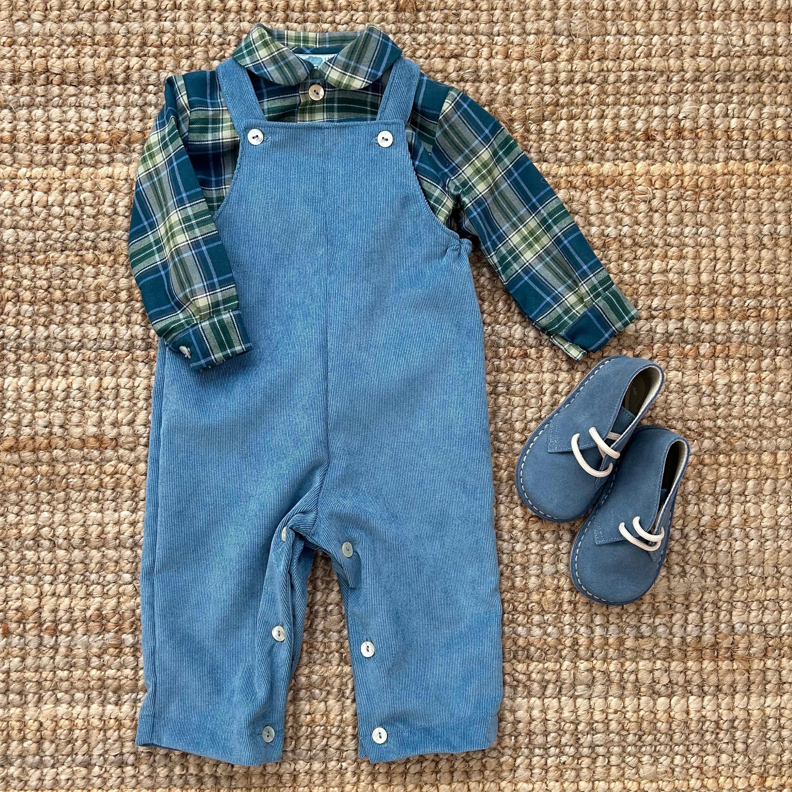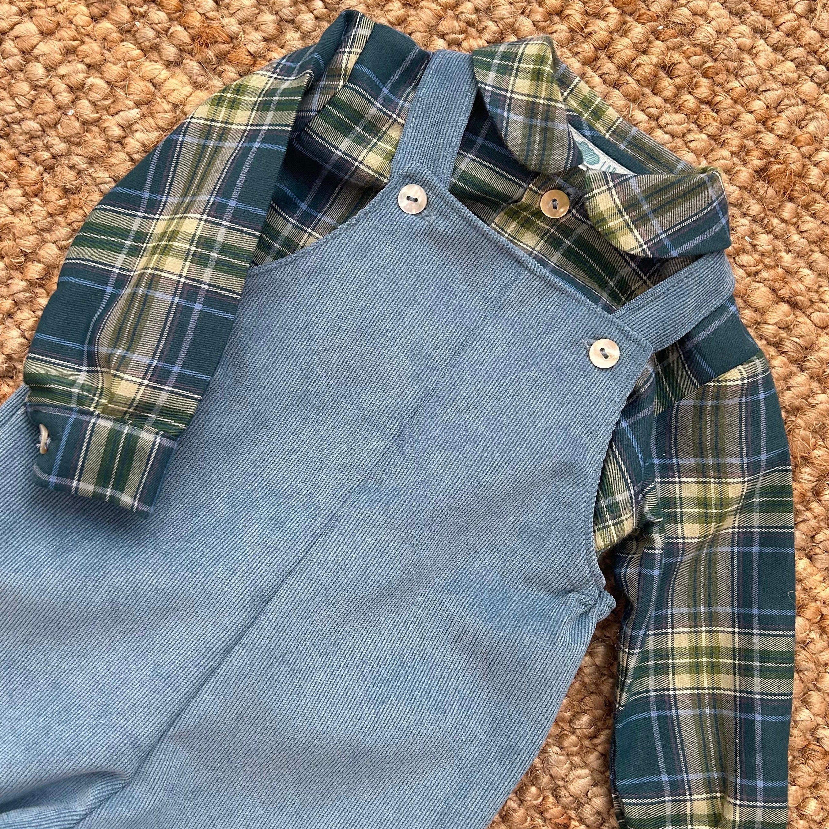 Salopette in velluto a coste con pantalone lungo e camicetta con collo tondo