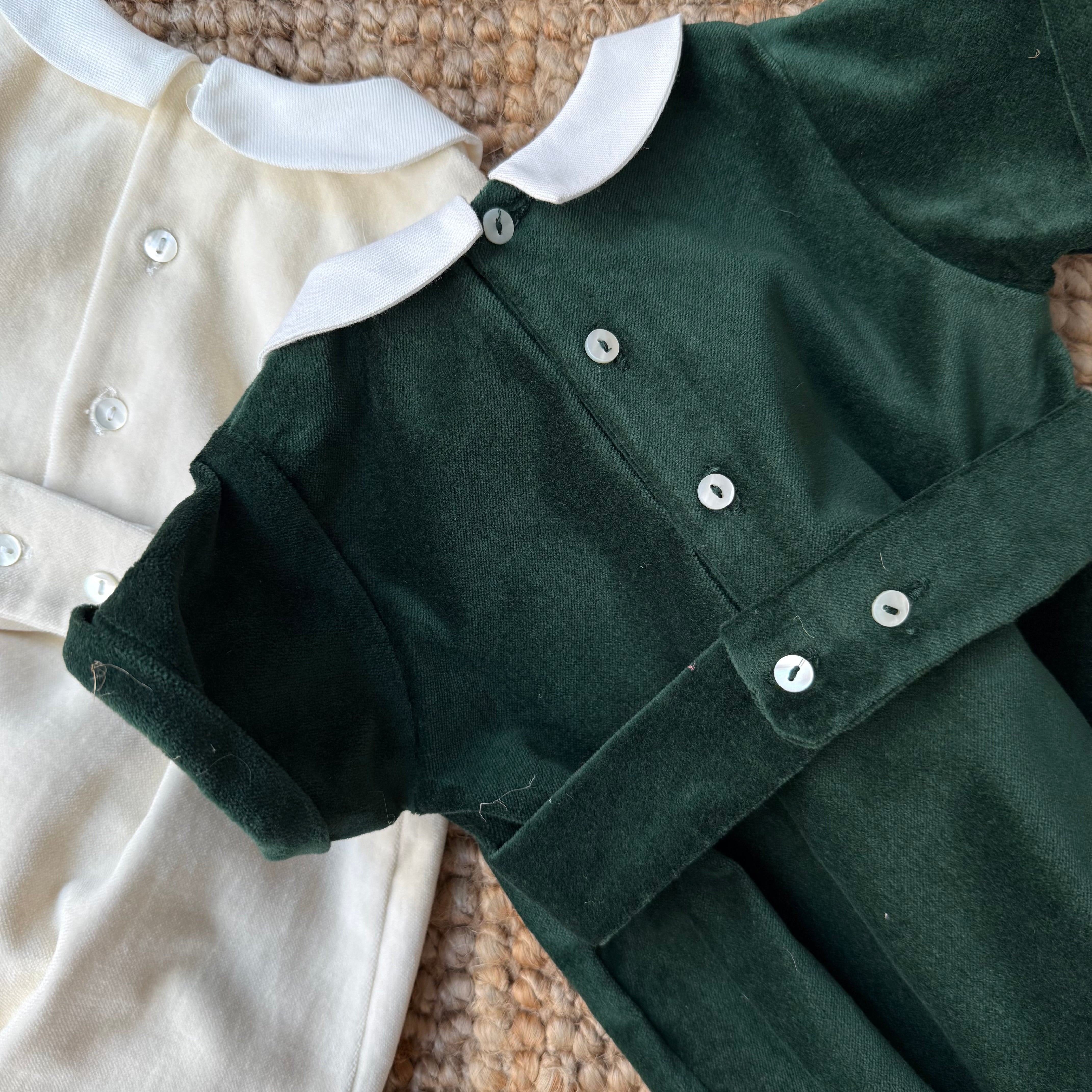 Eleganza senza tempo: pagliaccetto da cerimonia in velluto con colletto in contrasto