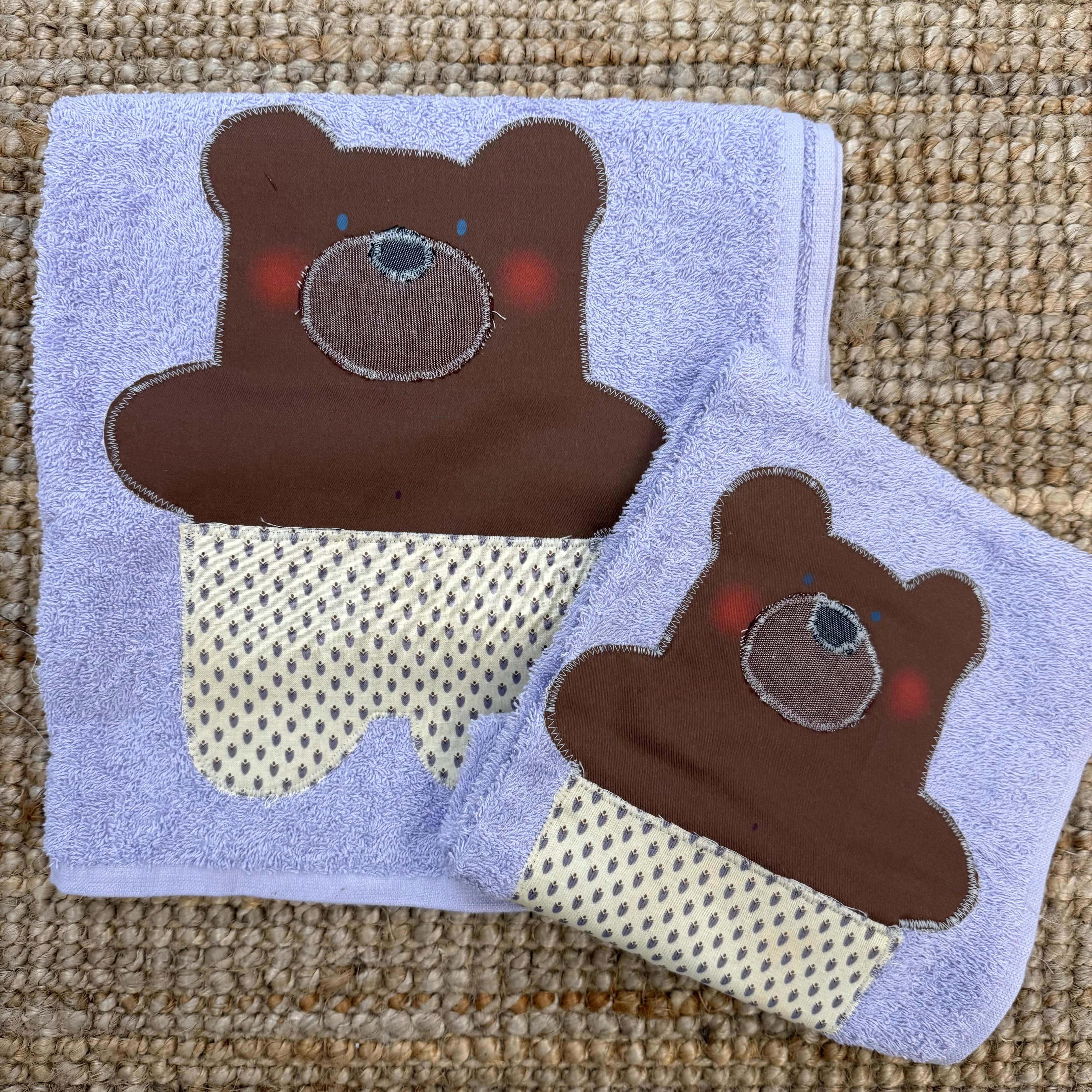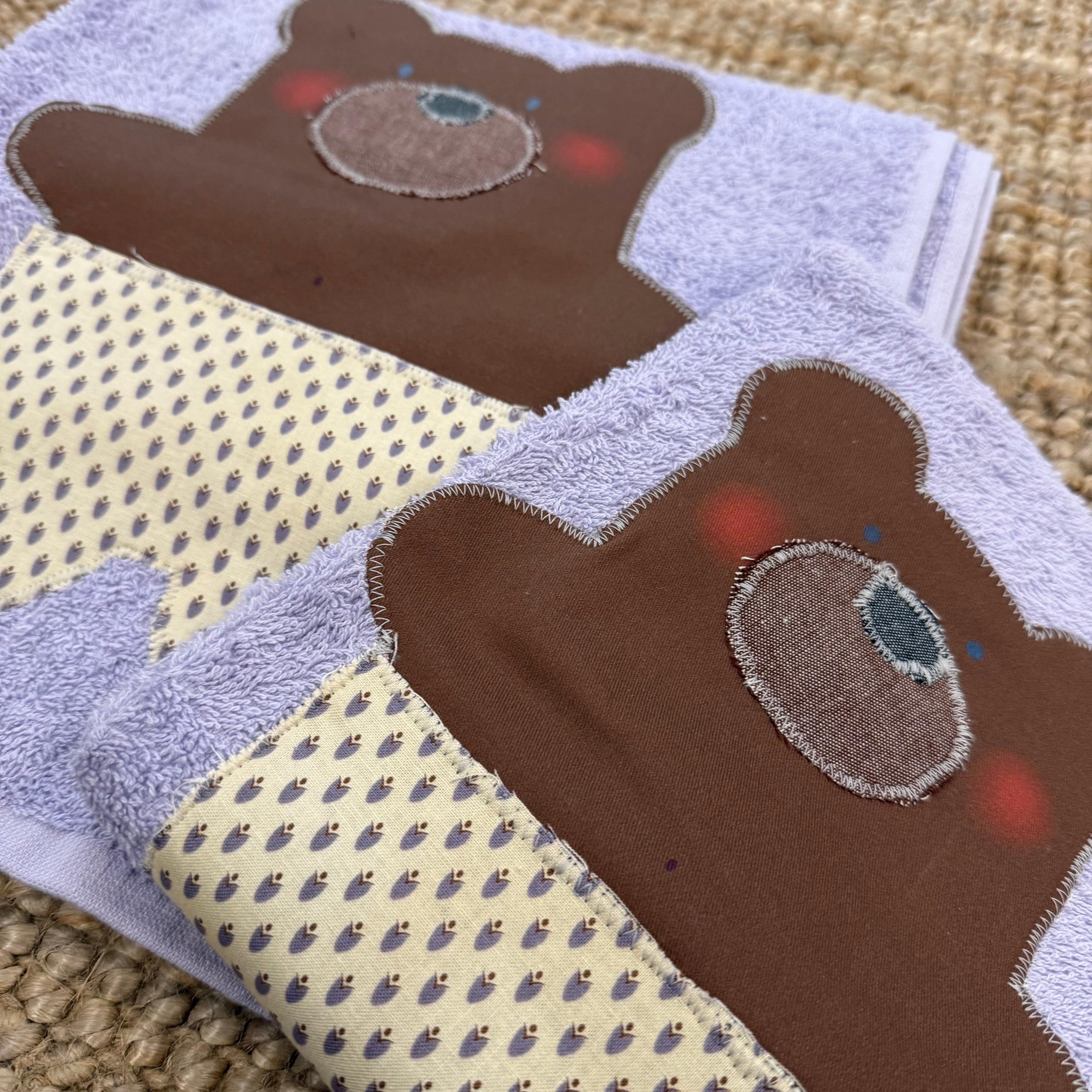 Set biancheria coppia asciugamani lilla ORSO marrone - Tessuti e Vissuti capsule x LANUVOLALAB