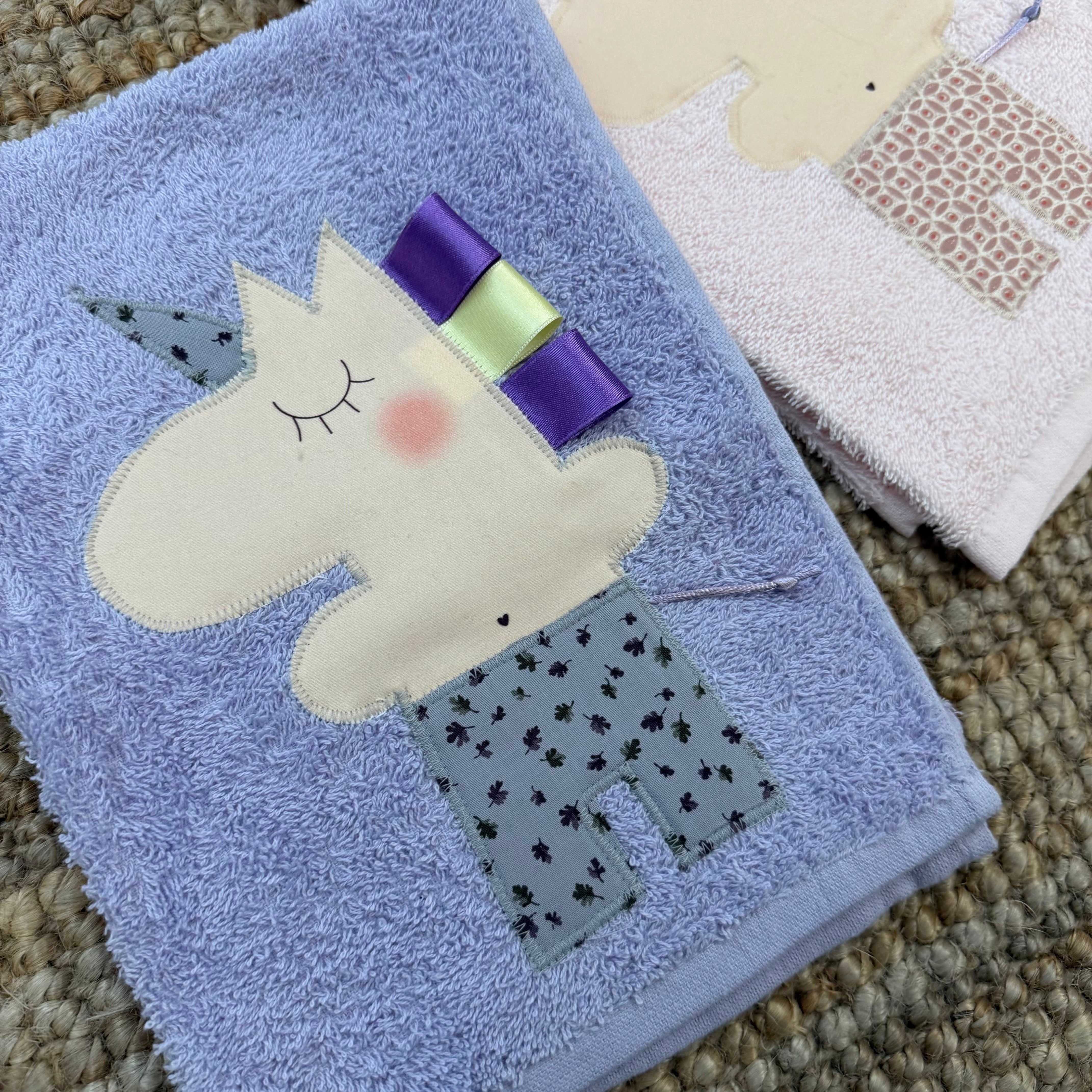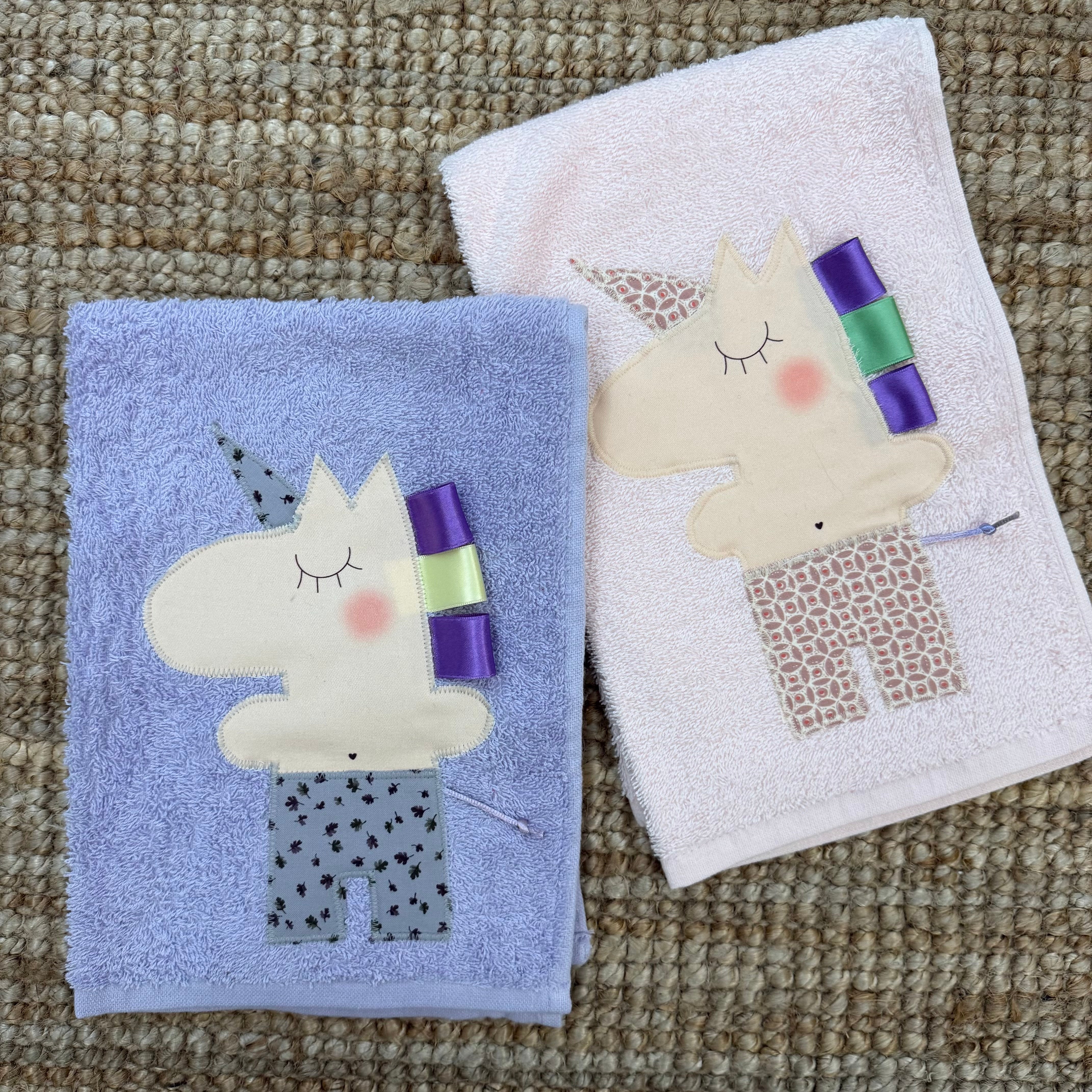 Set biancheria coppia asciugamani viola UNICORNO - Tessuti e Vissuti capsule x LANUVOLALAB
