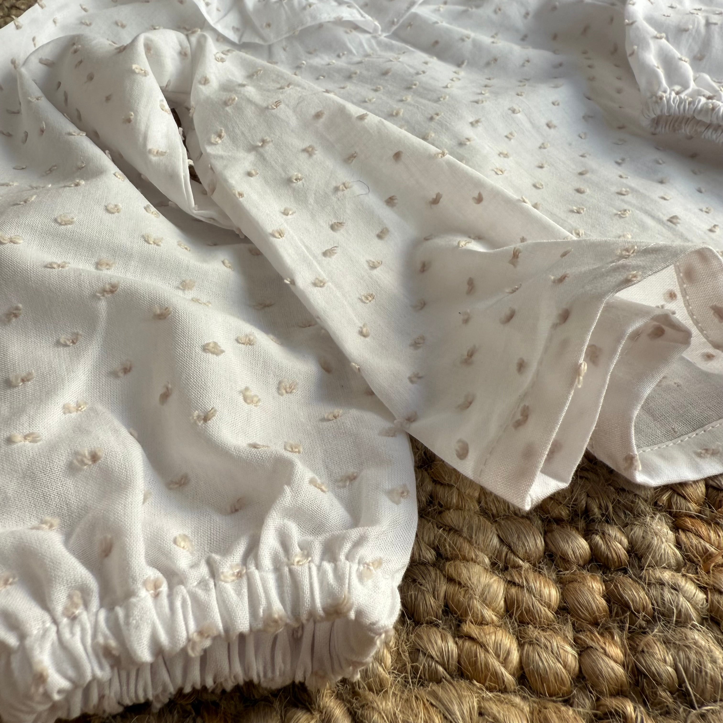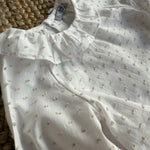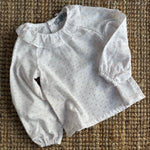 Camicetta colletto frill in plumetis sabbia su base bianca