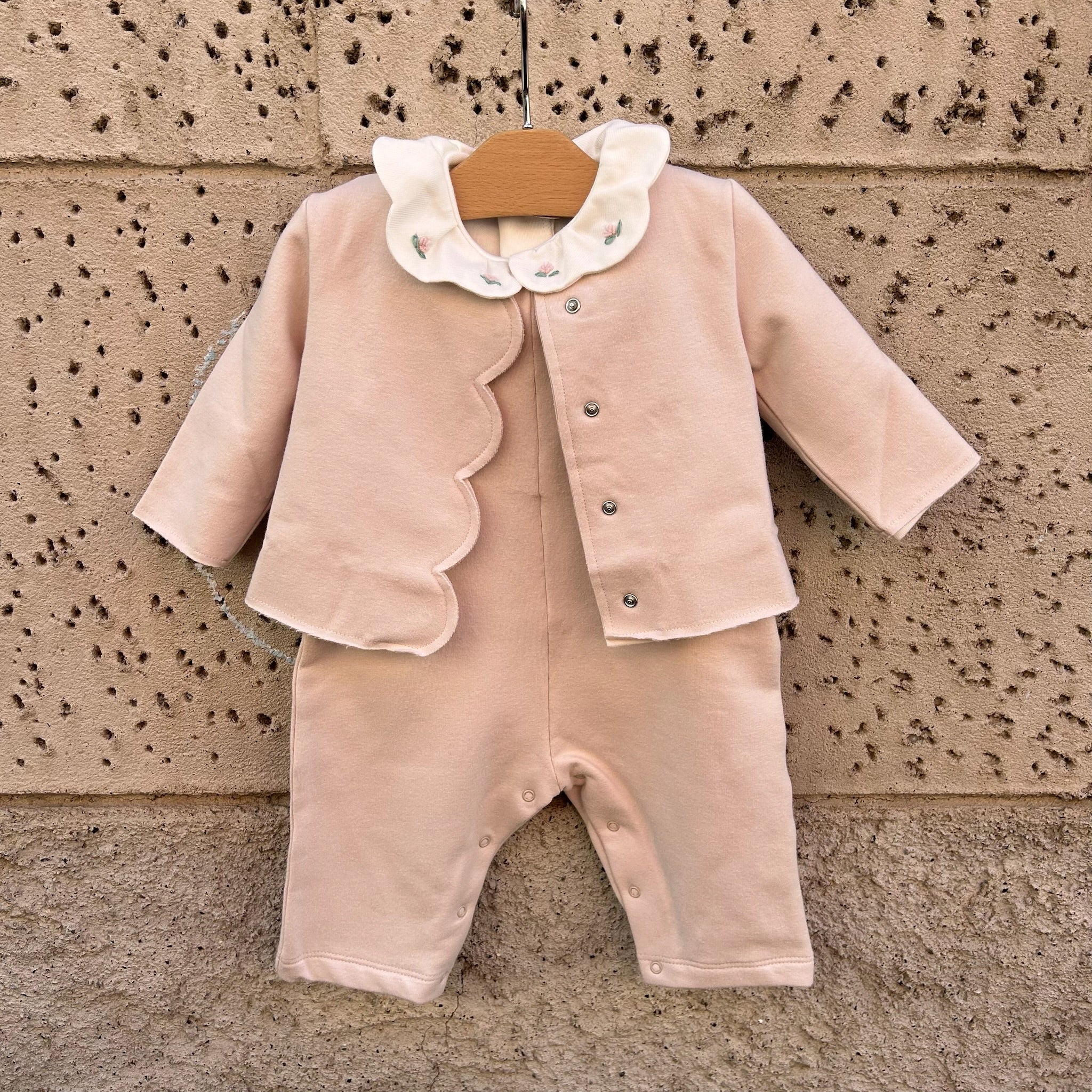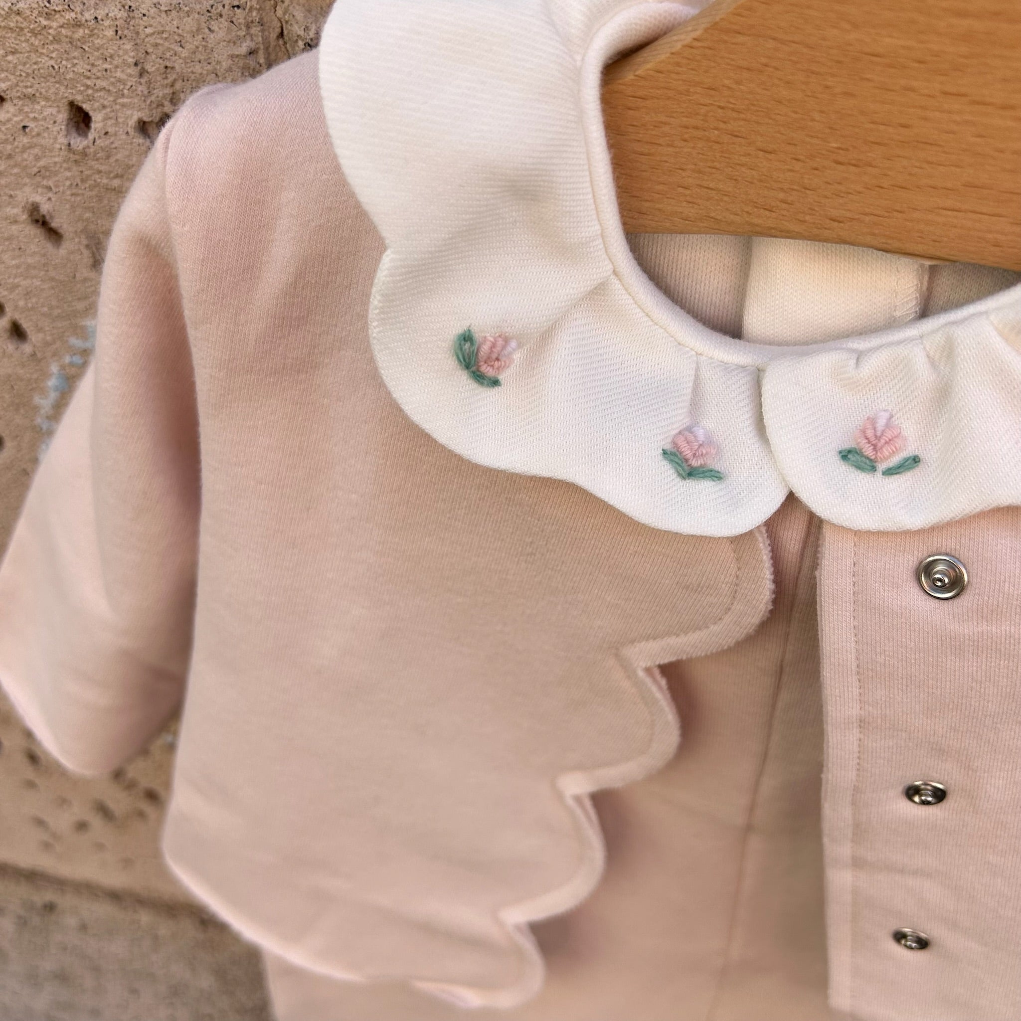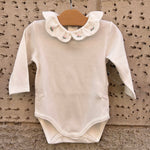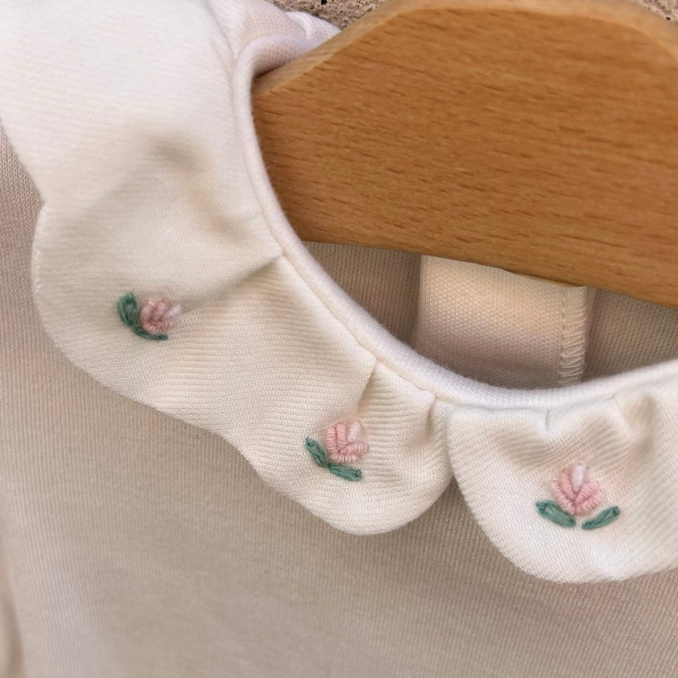 Body manica lunga 100% cotone con colletto petalo ricamato
