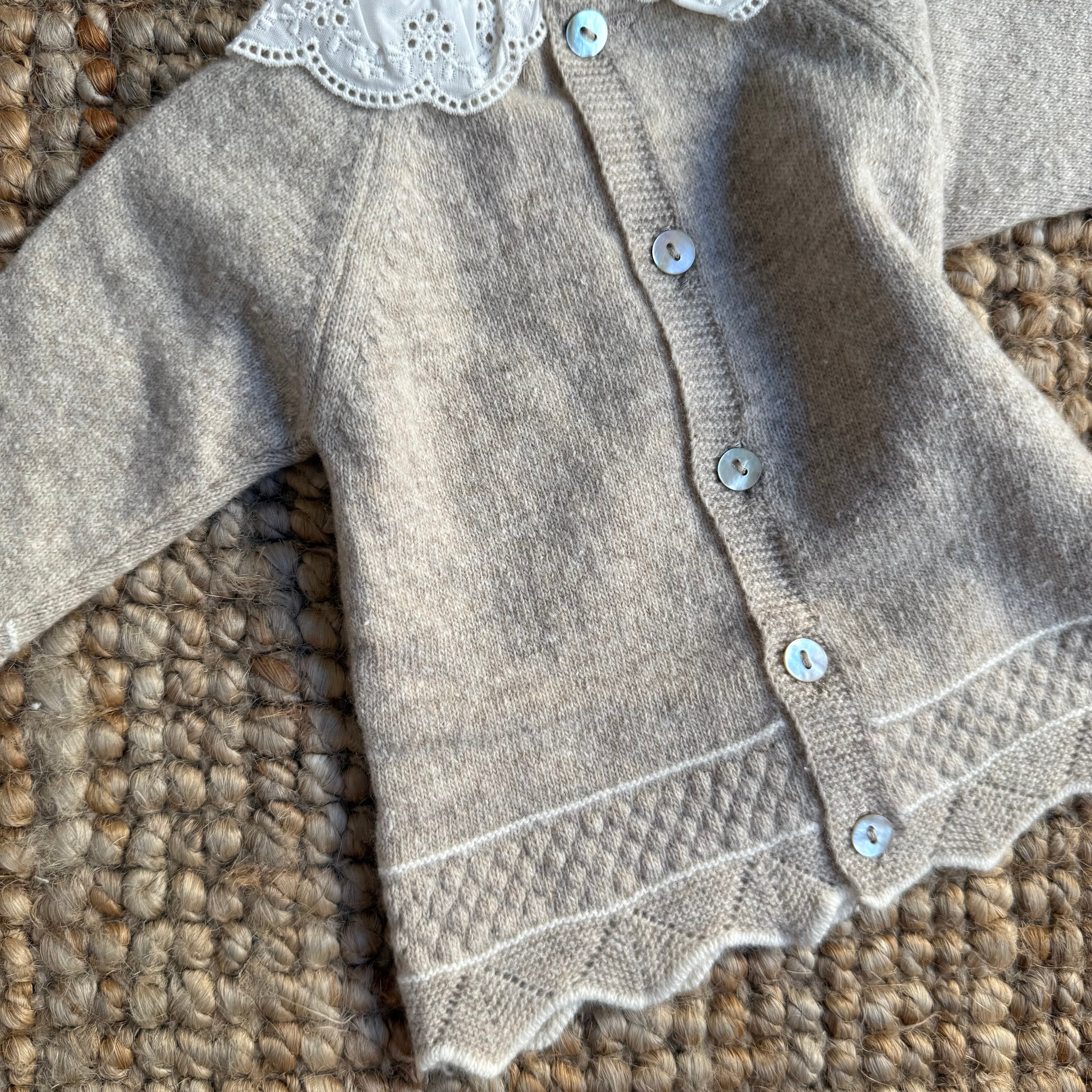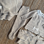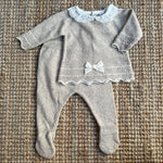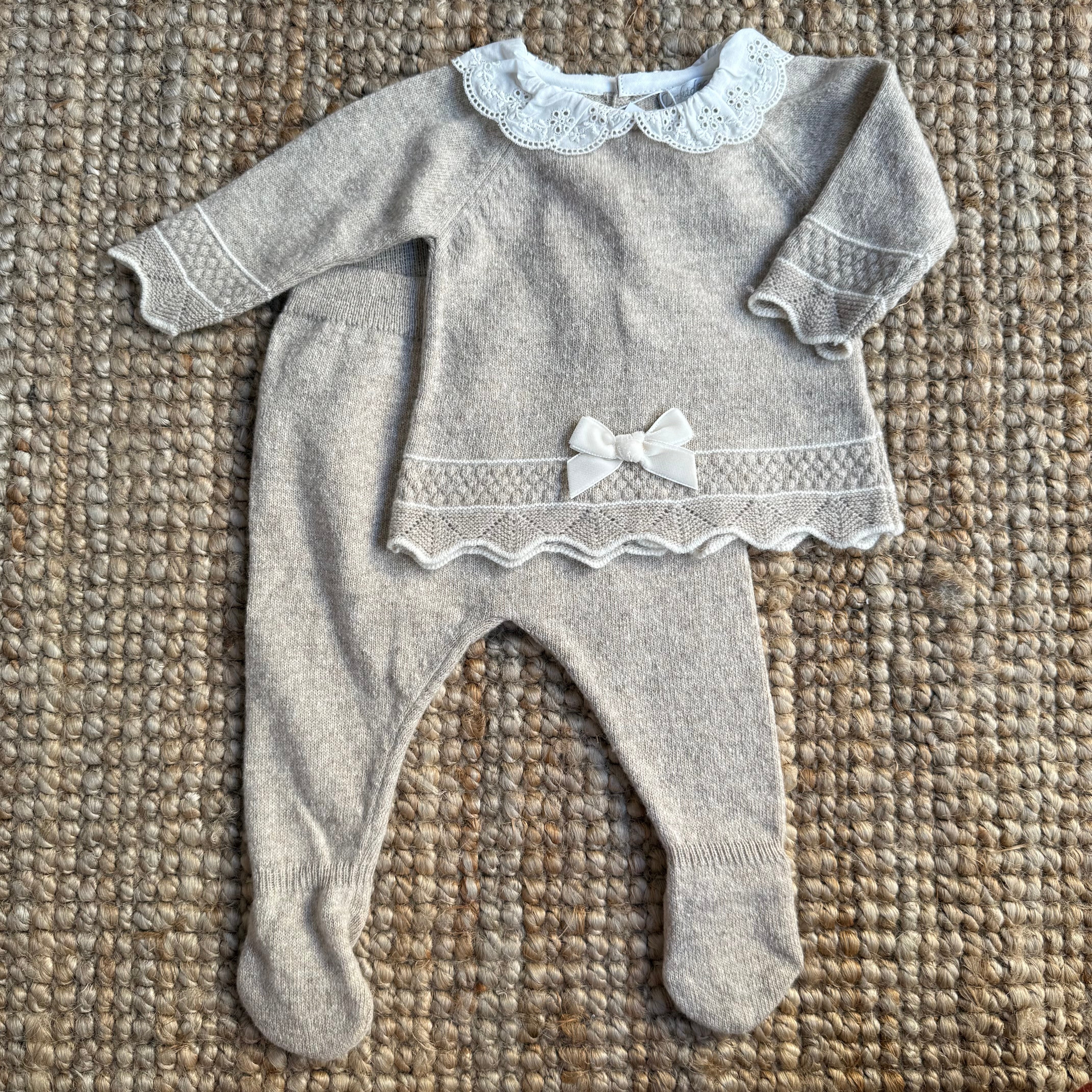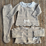 Completo spezzato moulinè beige e fiocco con colletto sangallo Dr Kid DK131