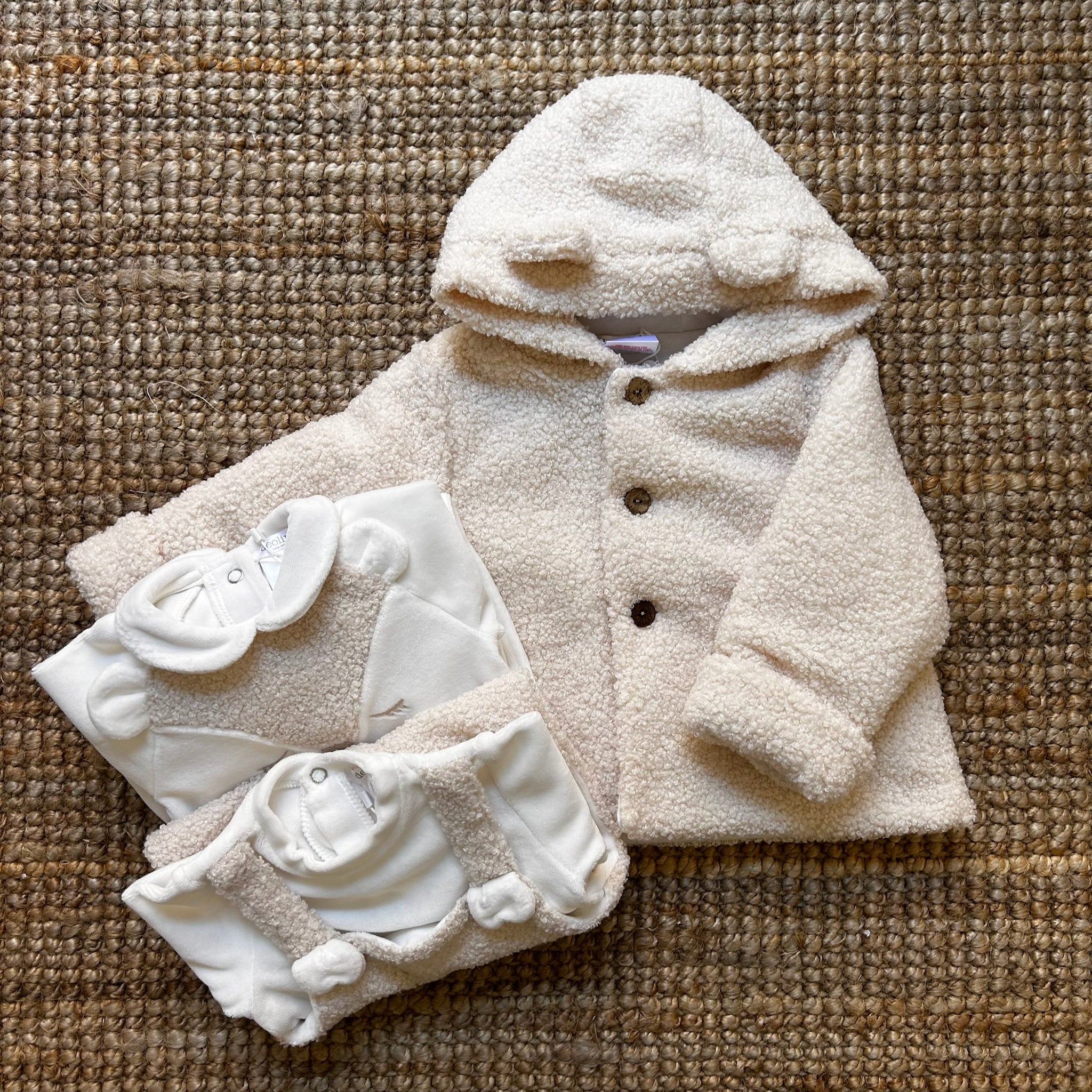 Tutina in ciniglia con salopette teddy