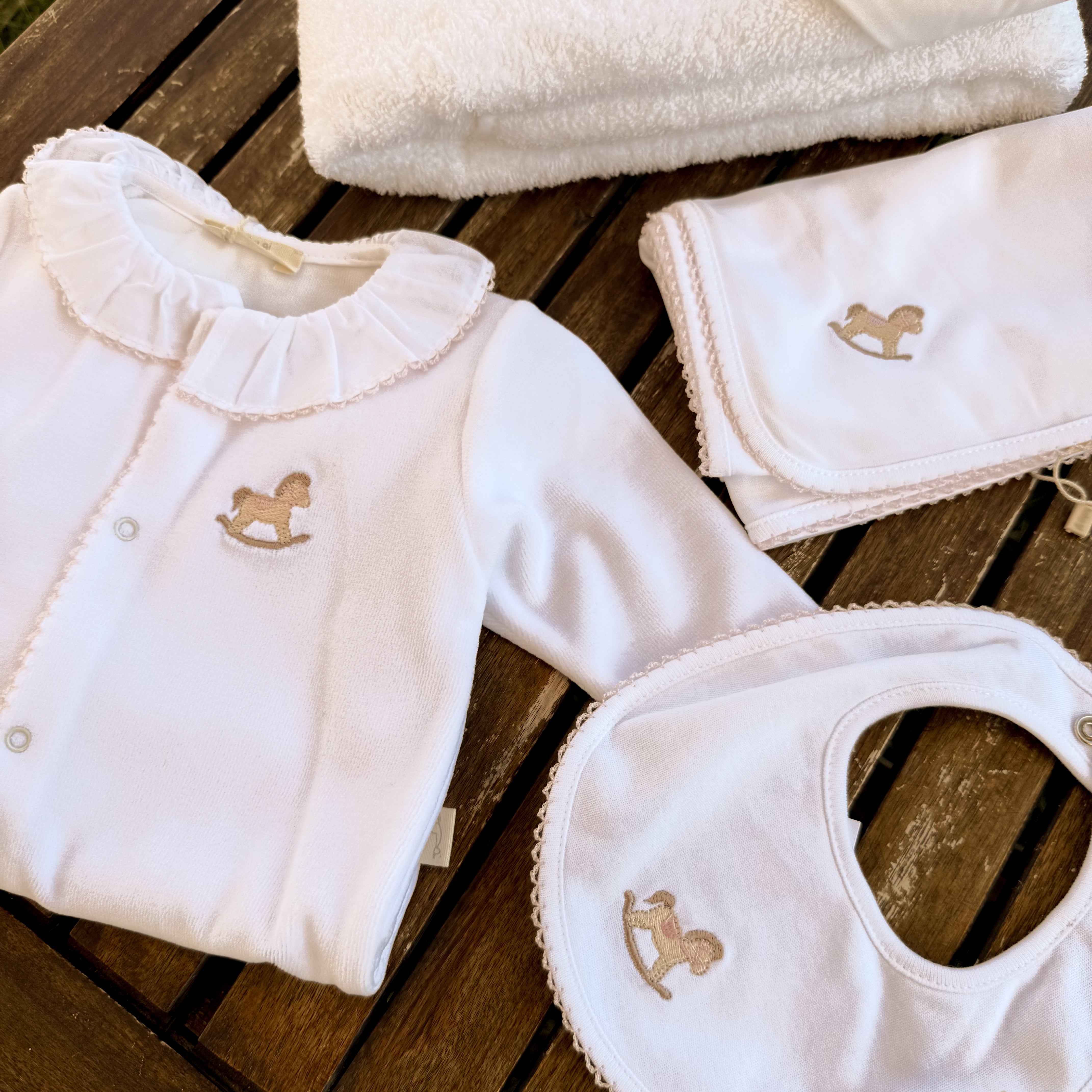 Pink crewneck cardigan newborn Mi Lucero x LA NUVOLA LAB I24064
