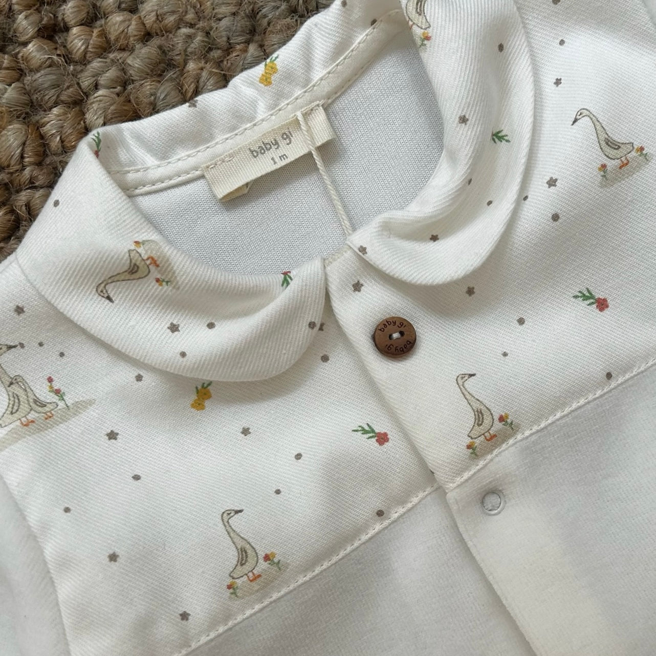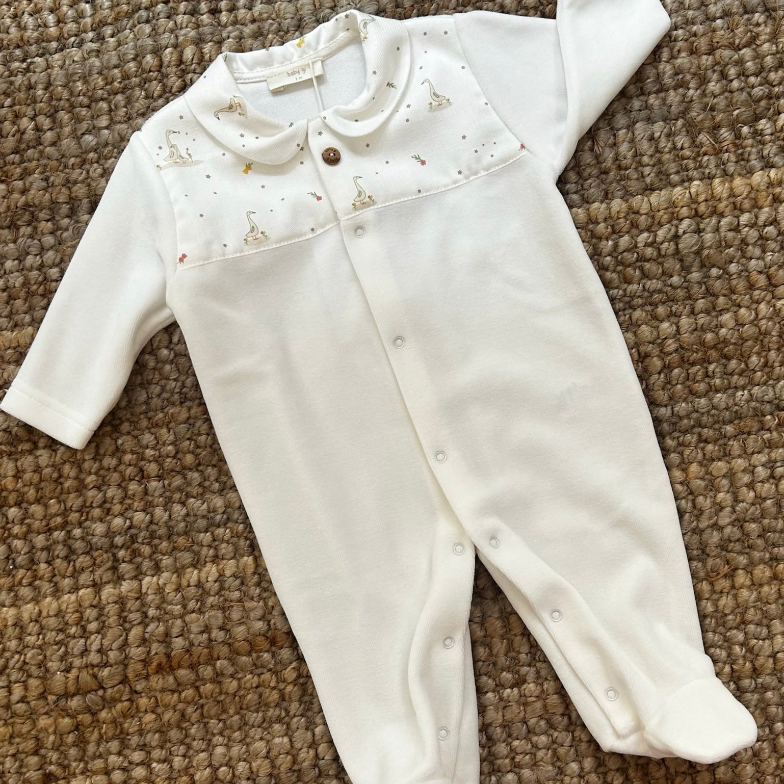 Tutina in ciniglia latte con parte superiore fantasia ochette GO53