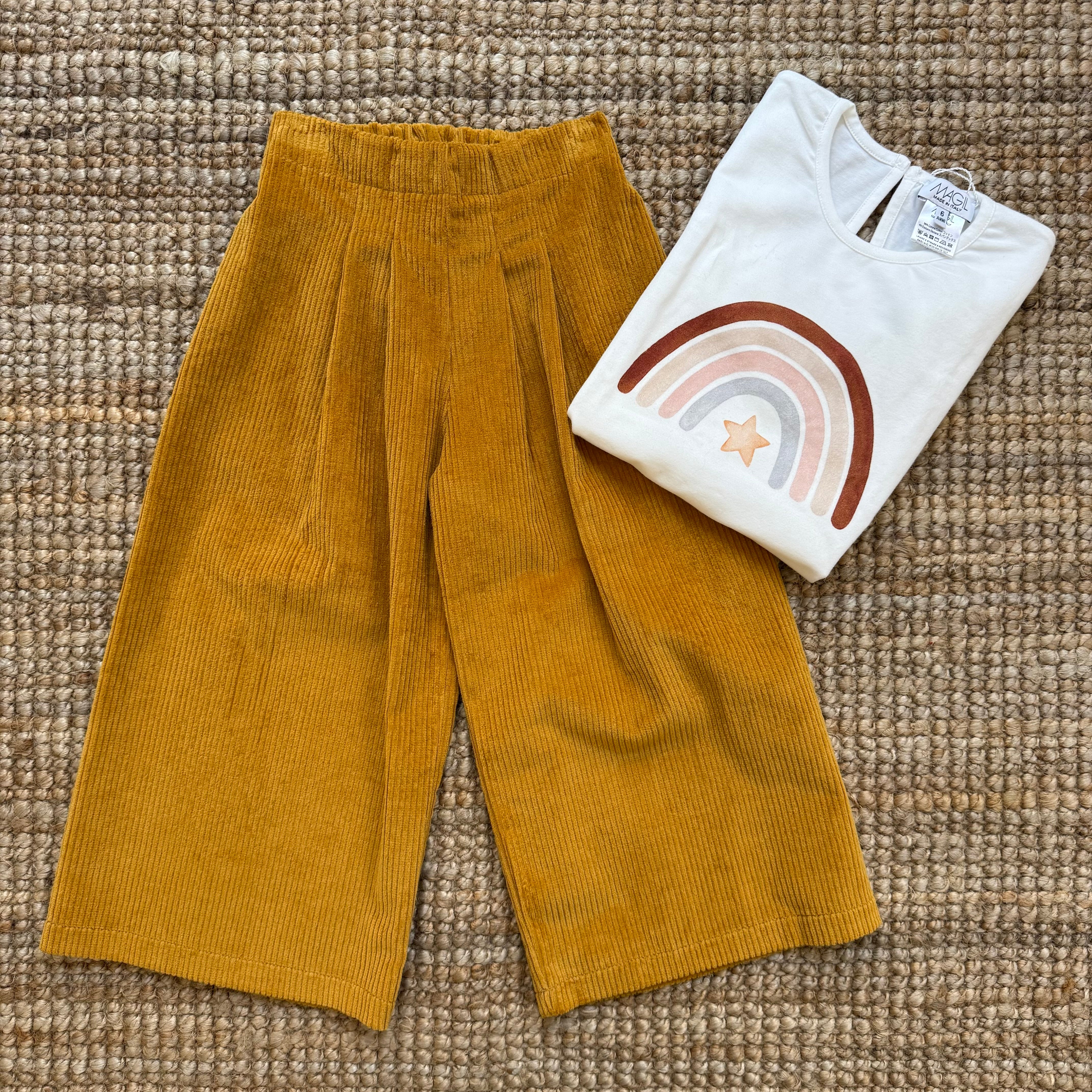 Pantalone palazzo LAB Ginny in velluto coste larghe senape
