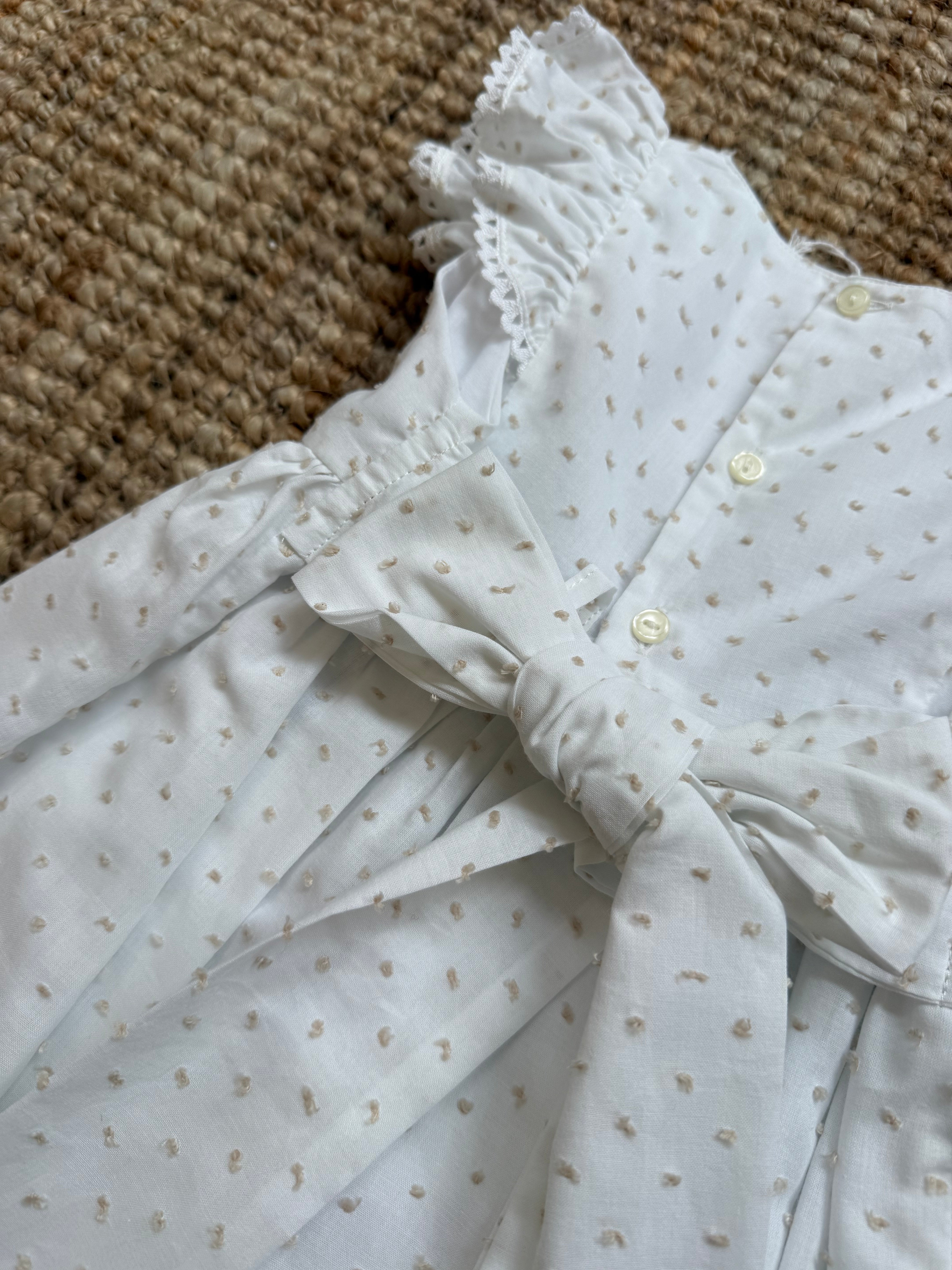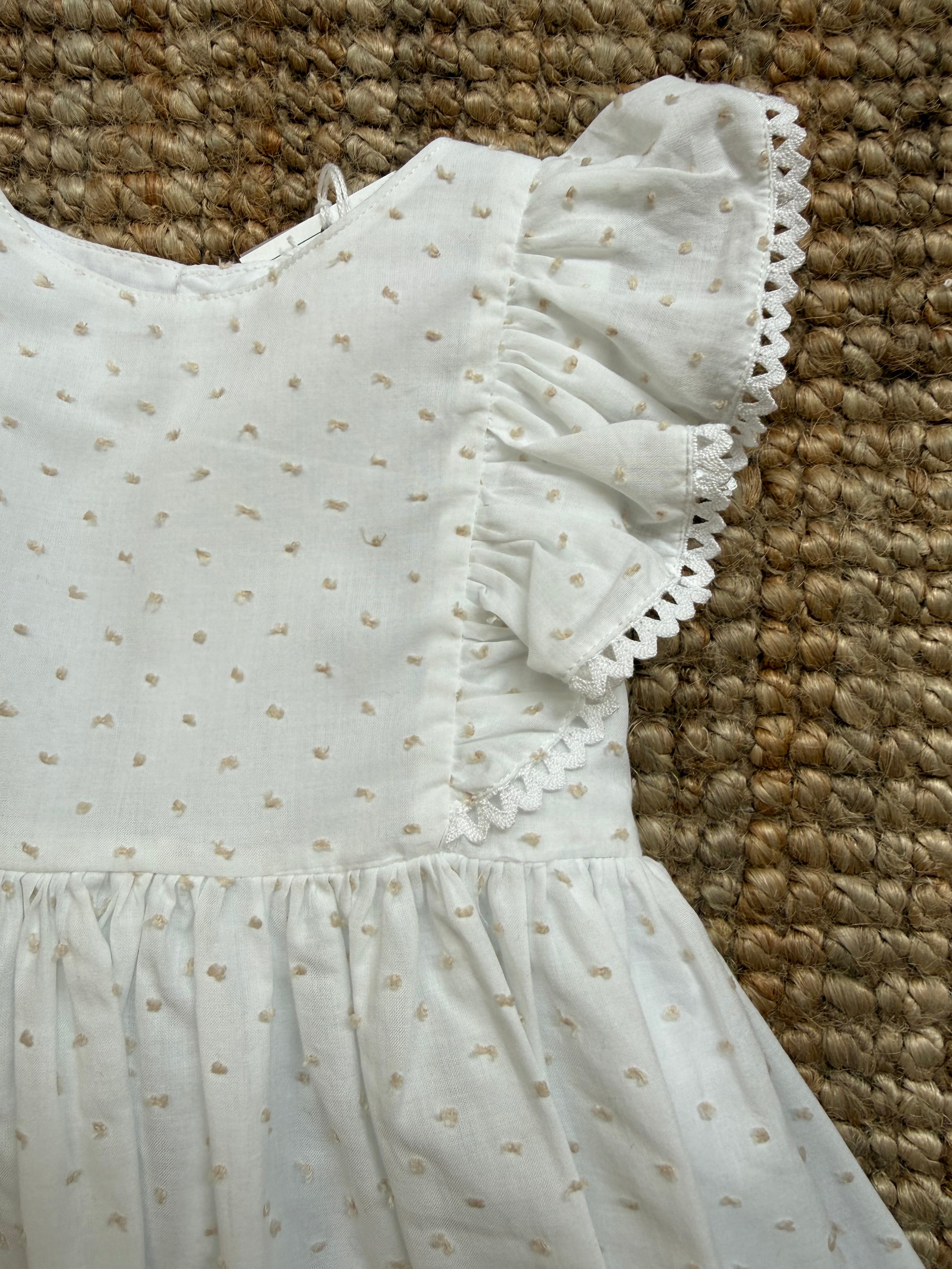 Abito plumetis bianco e sabbia Mariella Ferrari P018