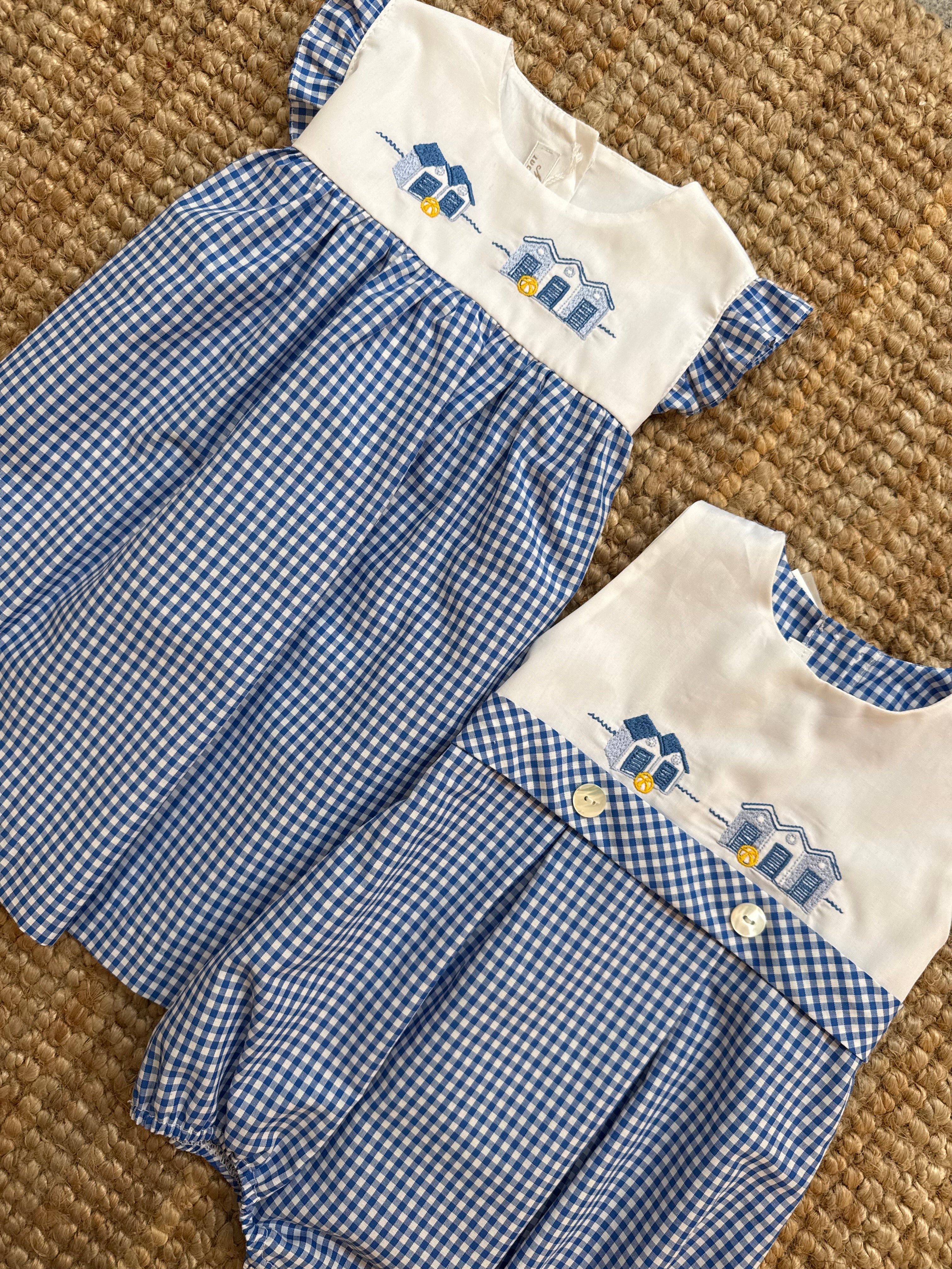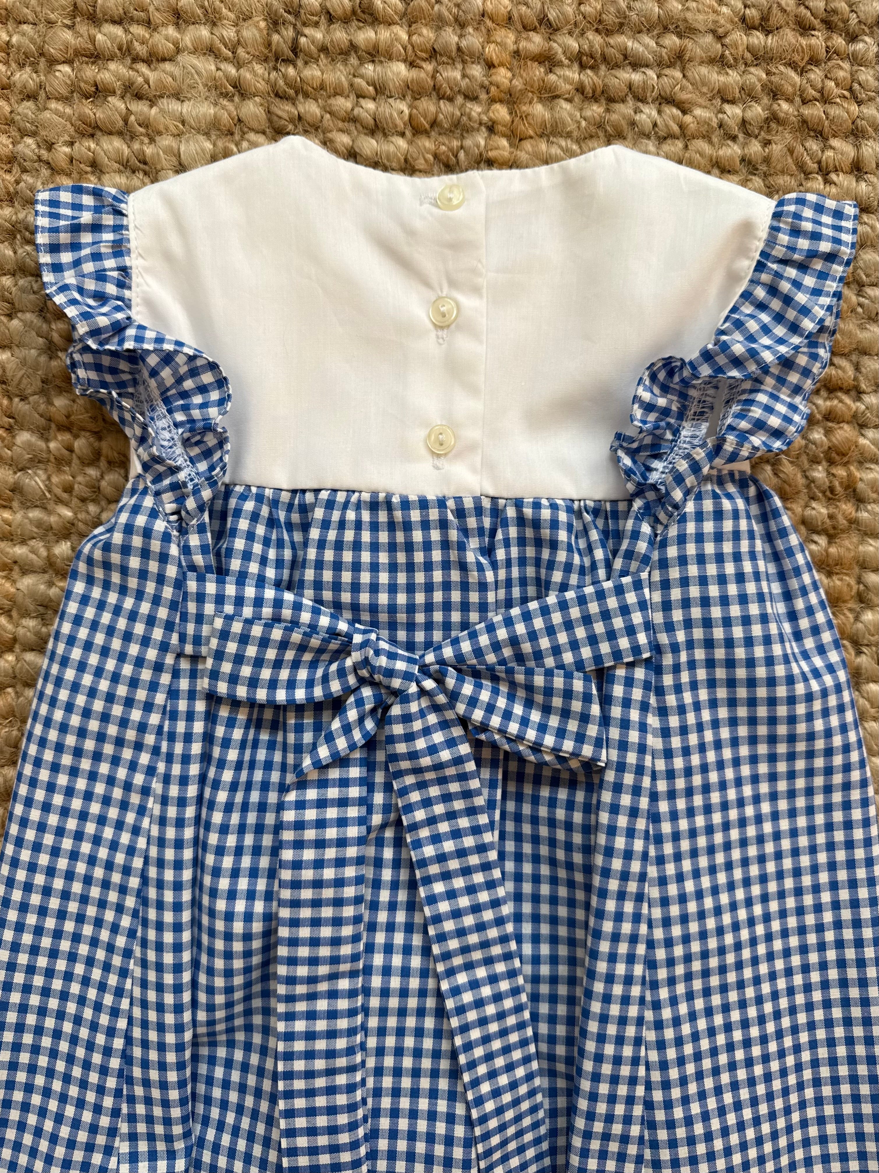 Abito con corpetto ricamato, frill sulle spalle e gonna vichy