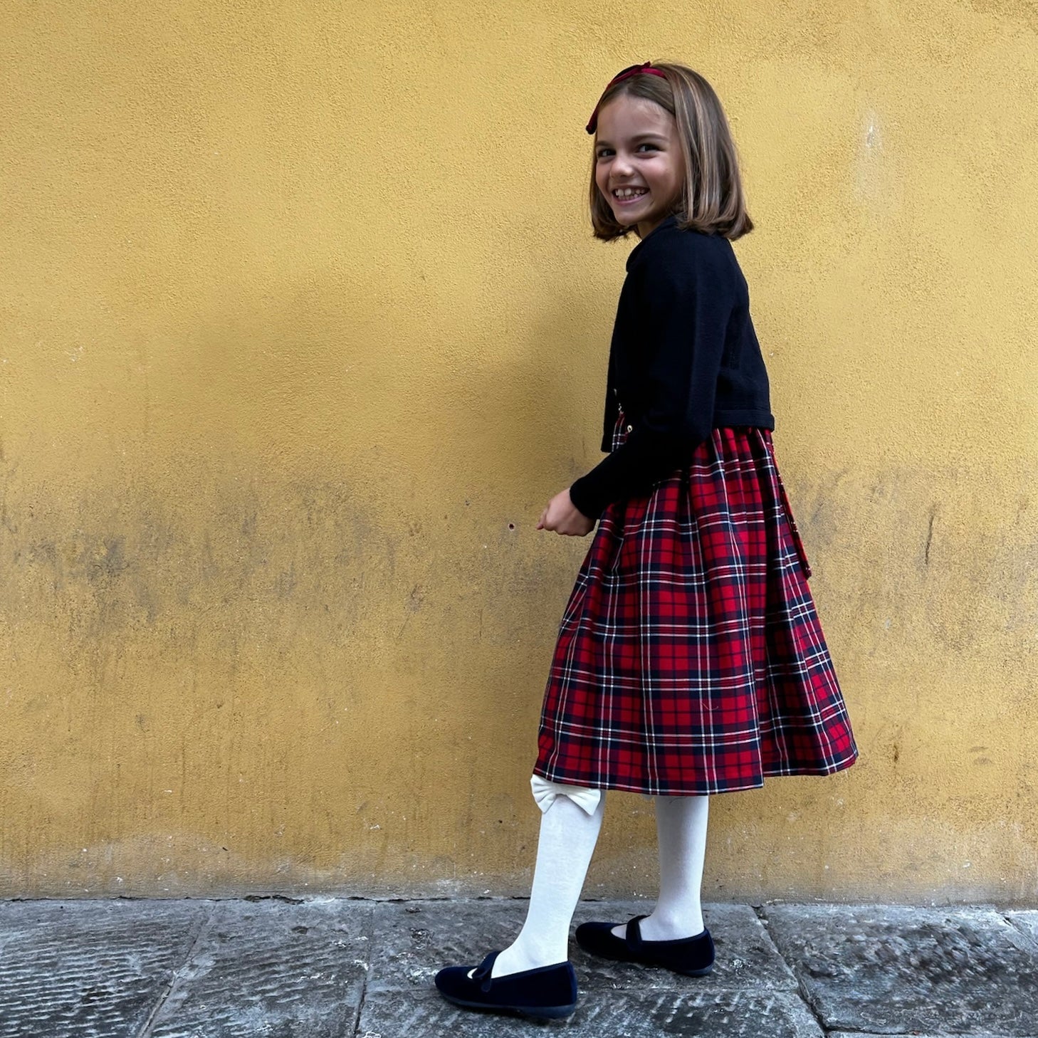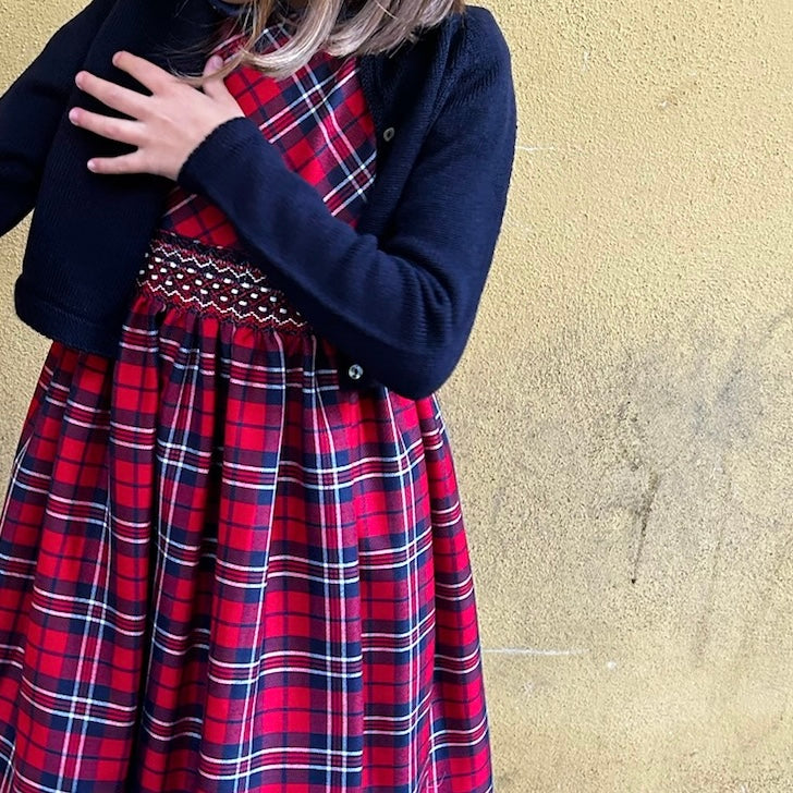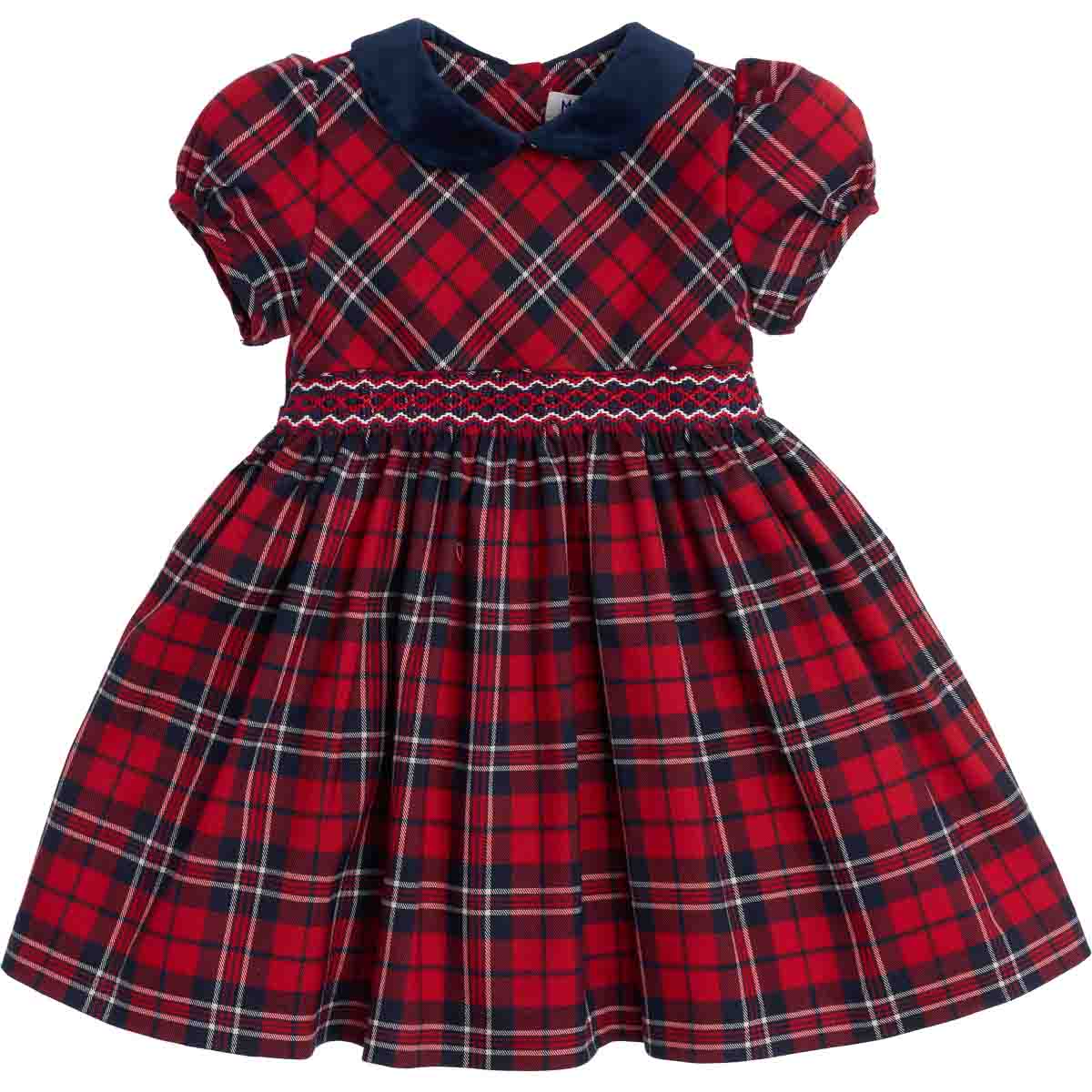 Red and blue tartan dress with smocking embroidery FCCM003VERR