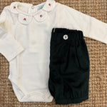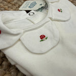 Body newborn manica lunga in jersey bianco con colletto stondato rifinito con rouches ricamato a mano