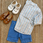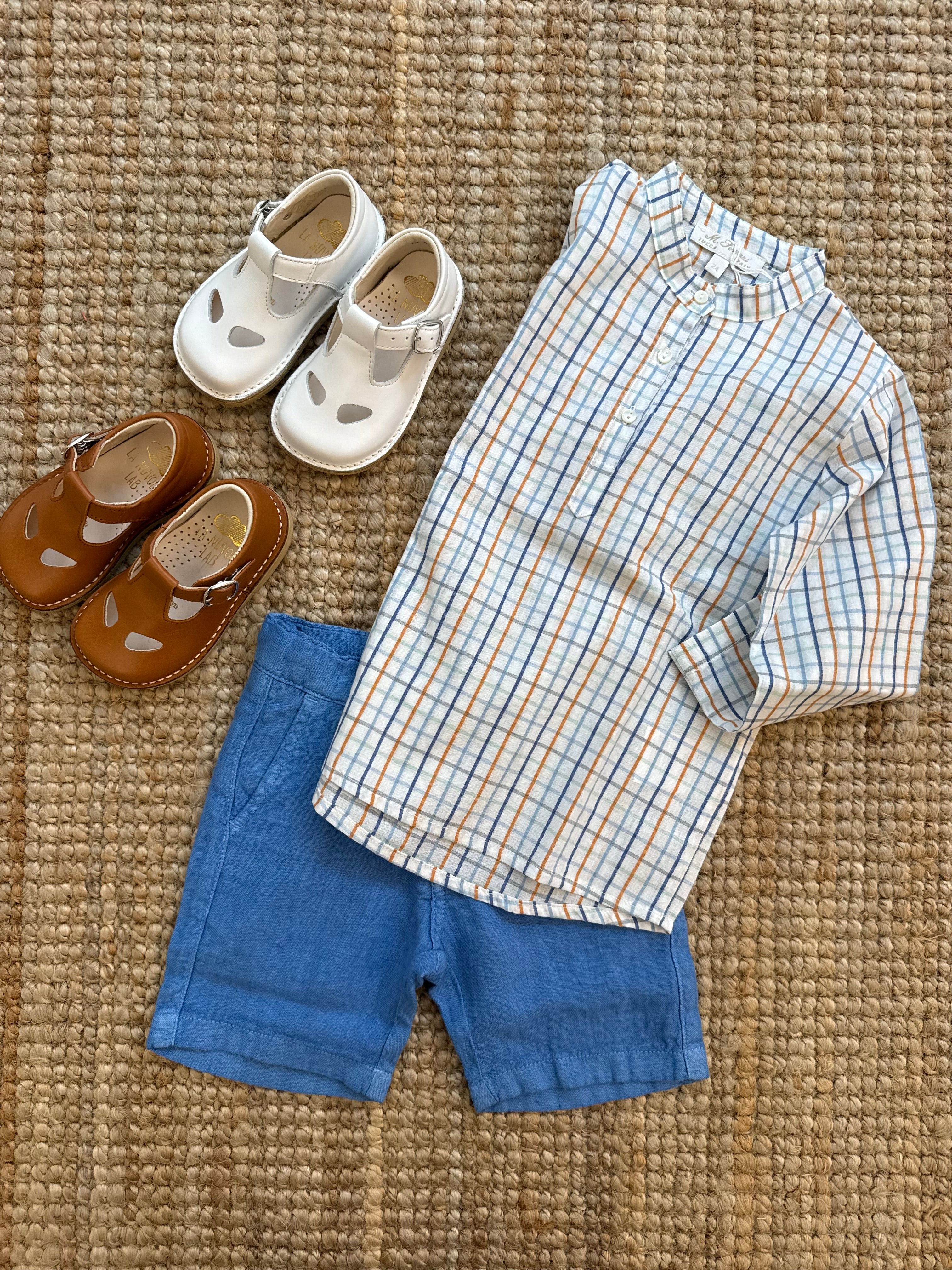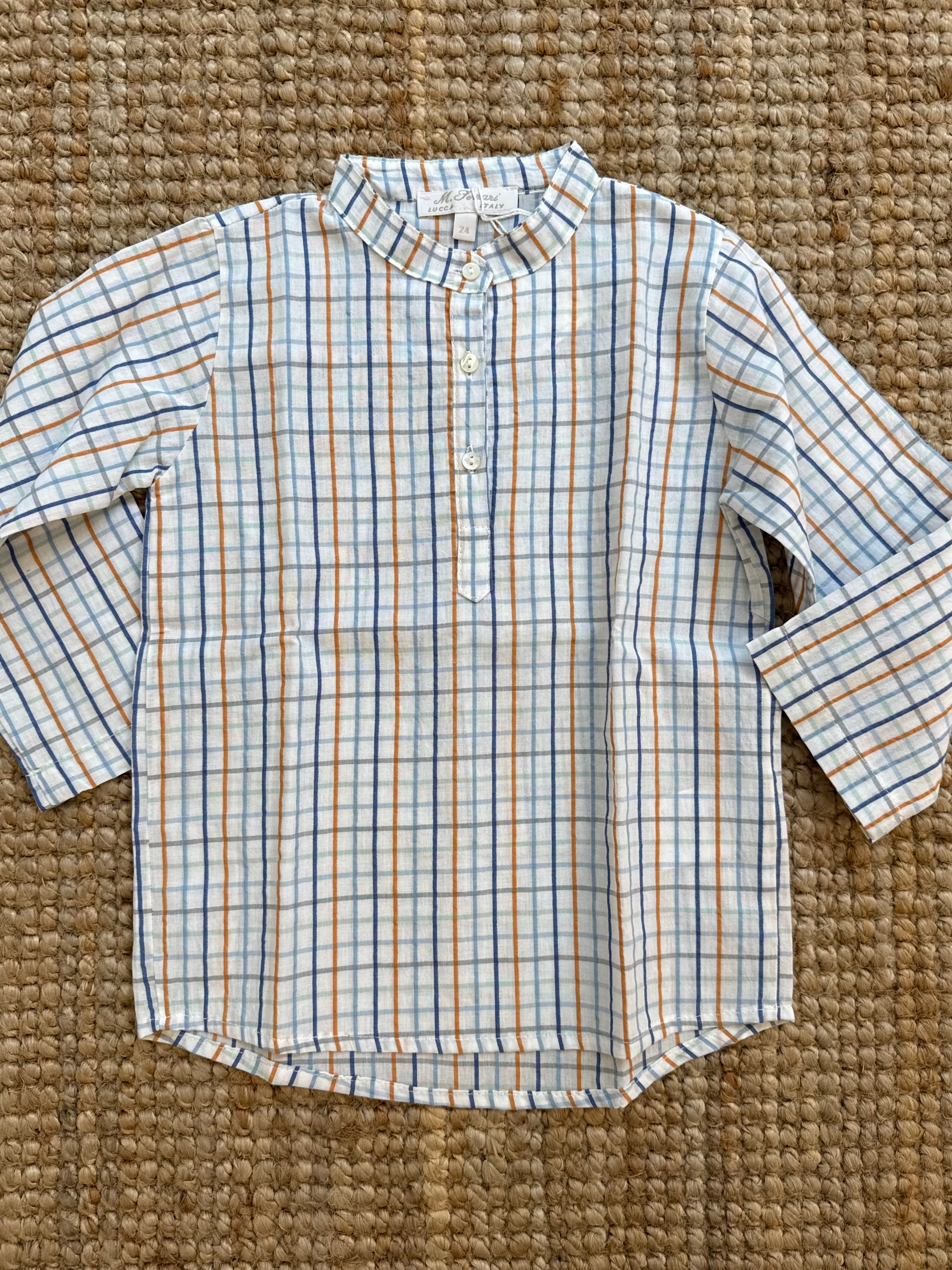Camicia coreana quadro azzurro e arancio Mariella Ferrari CAD4