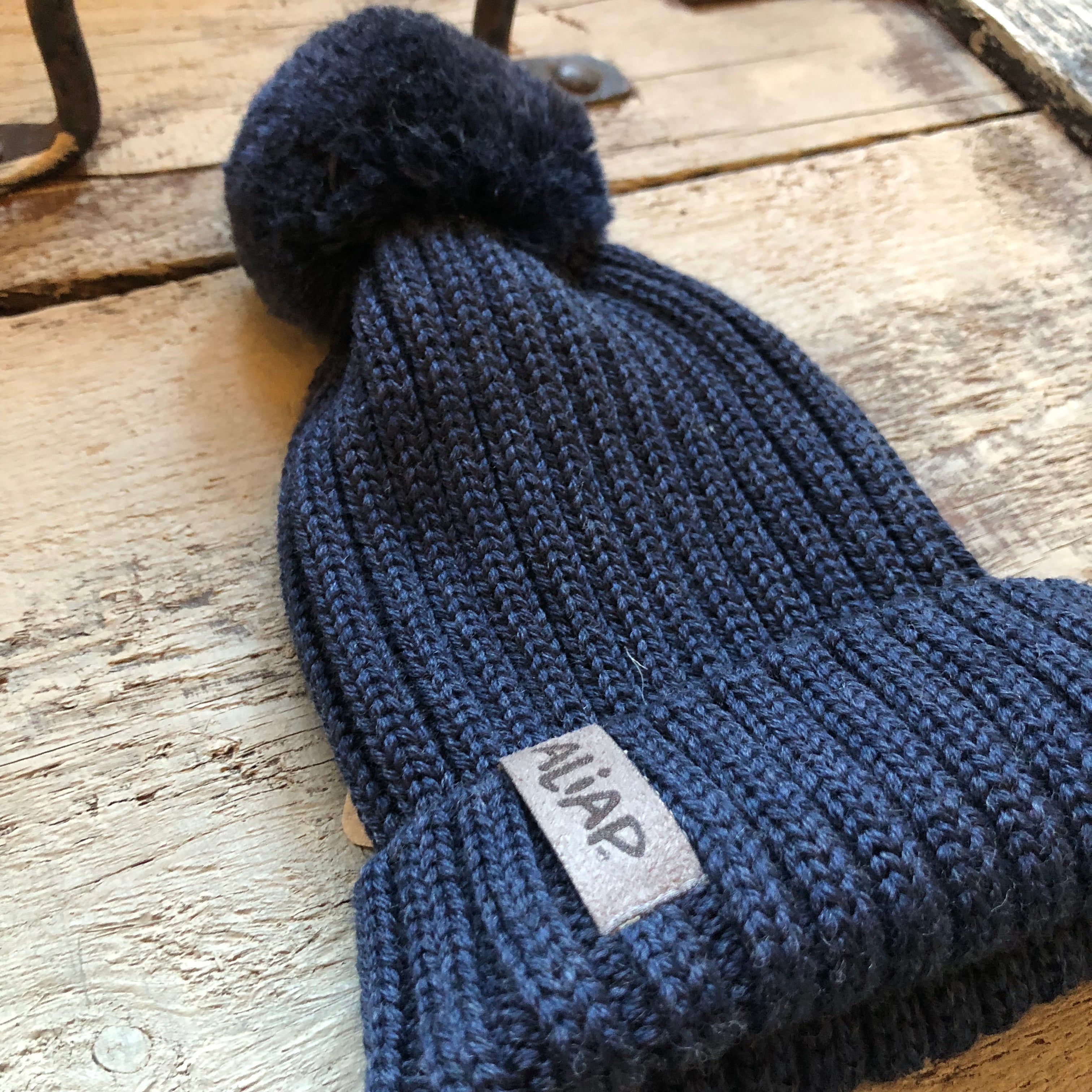 Cappello in pura lana merinos a coste larghe con pom pom Aliap 4954