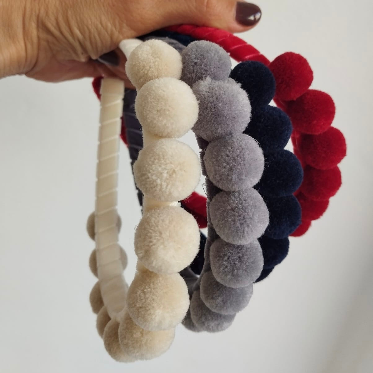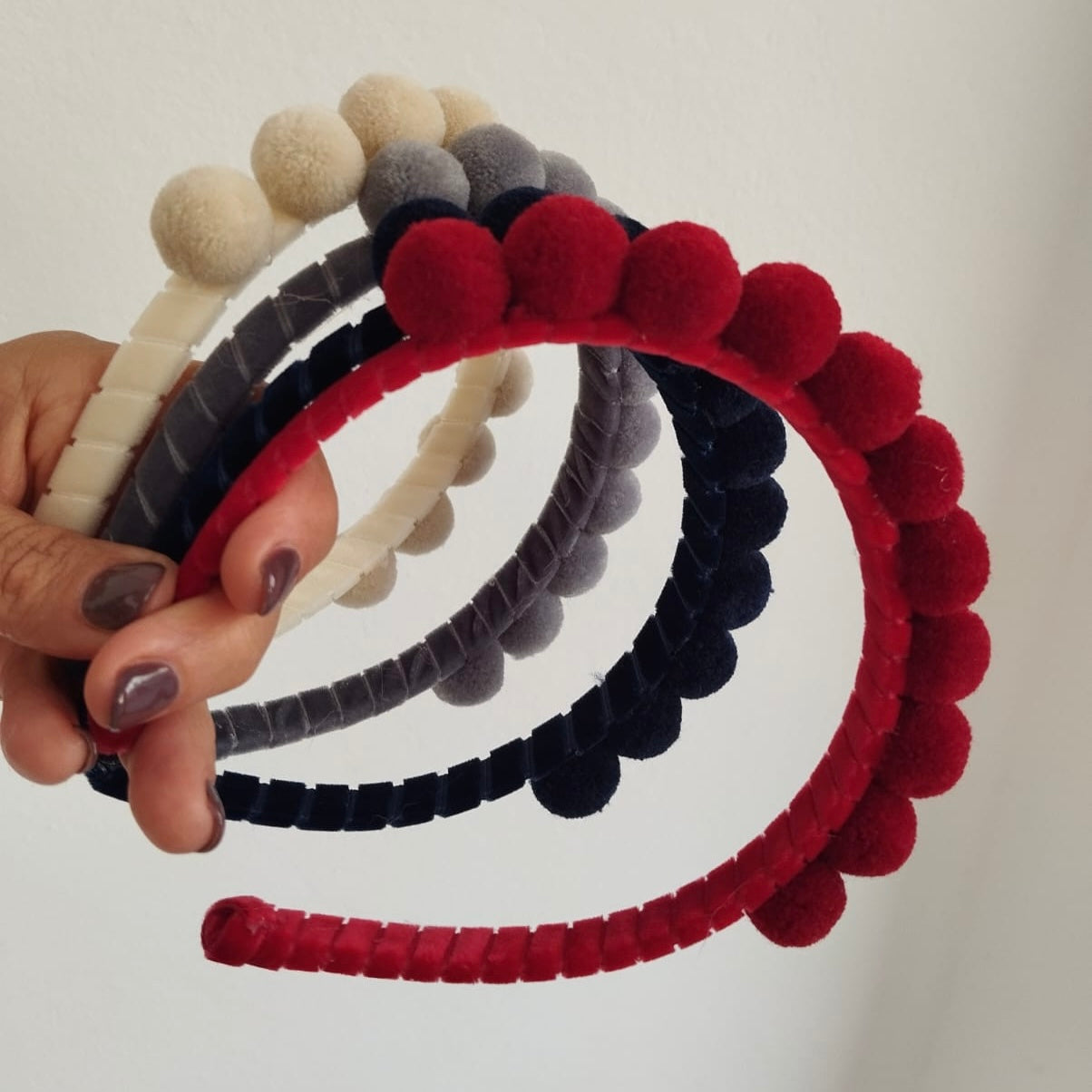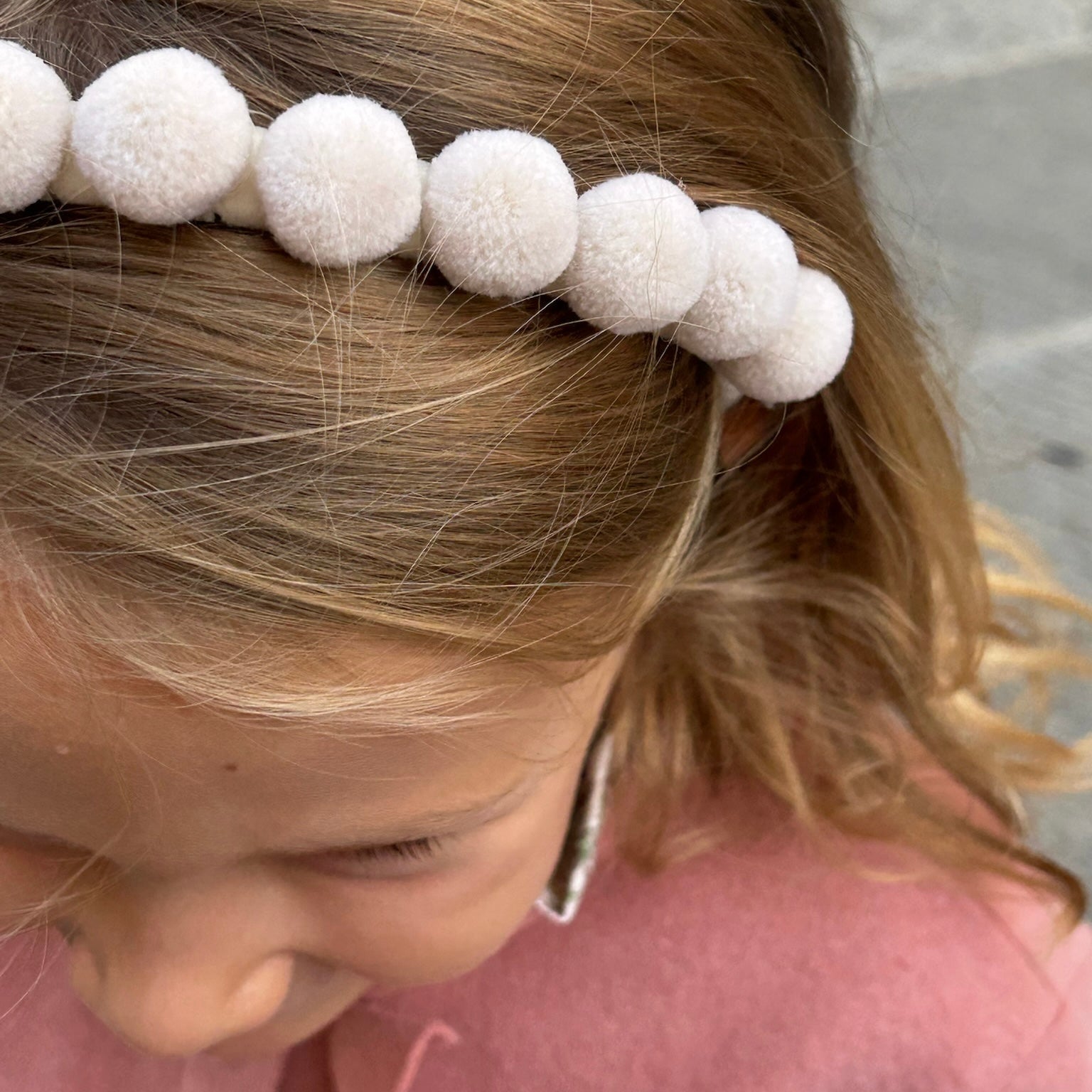 Cerchietto rivestito in velluto con coroncina di ponpon