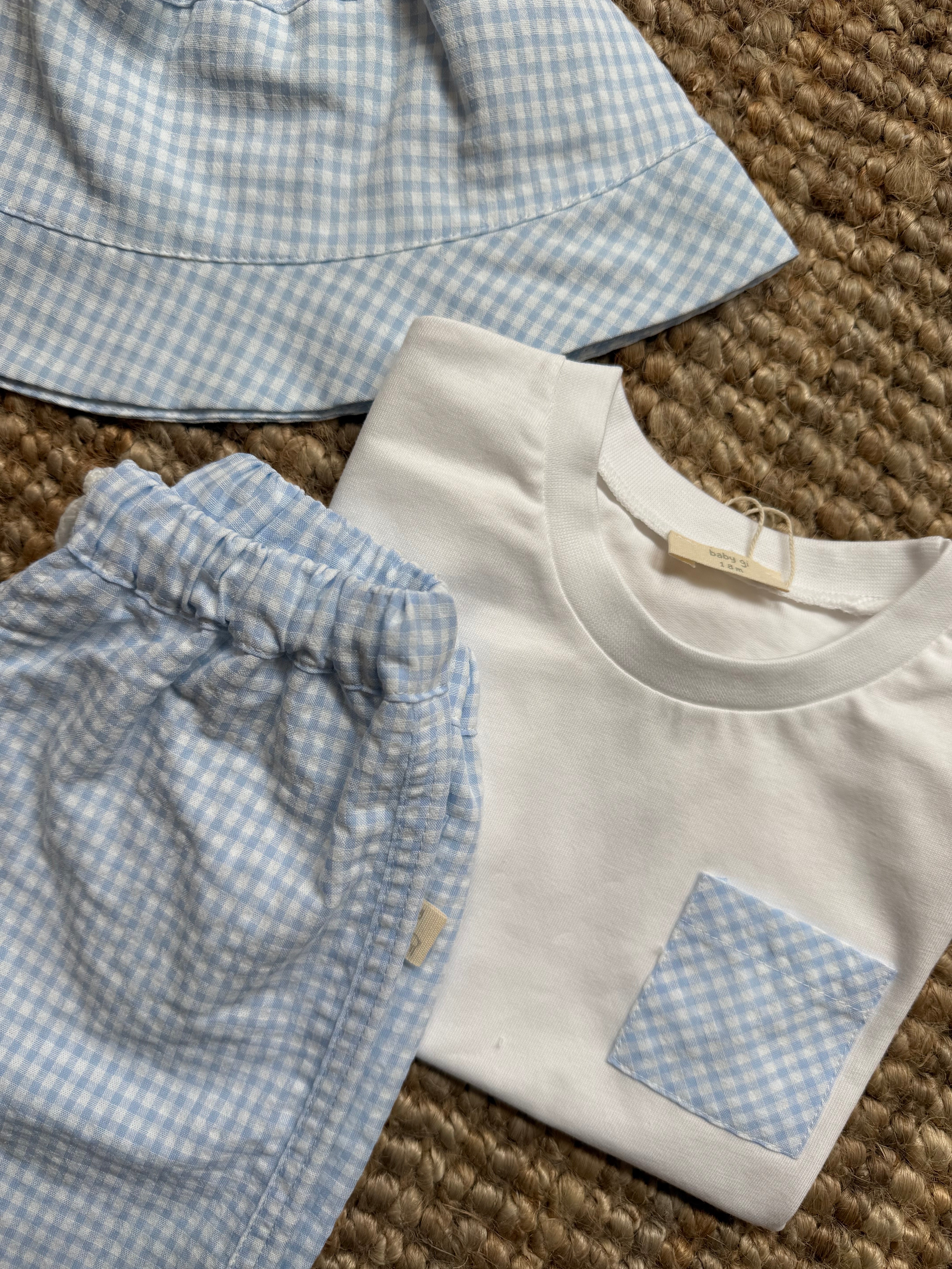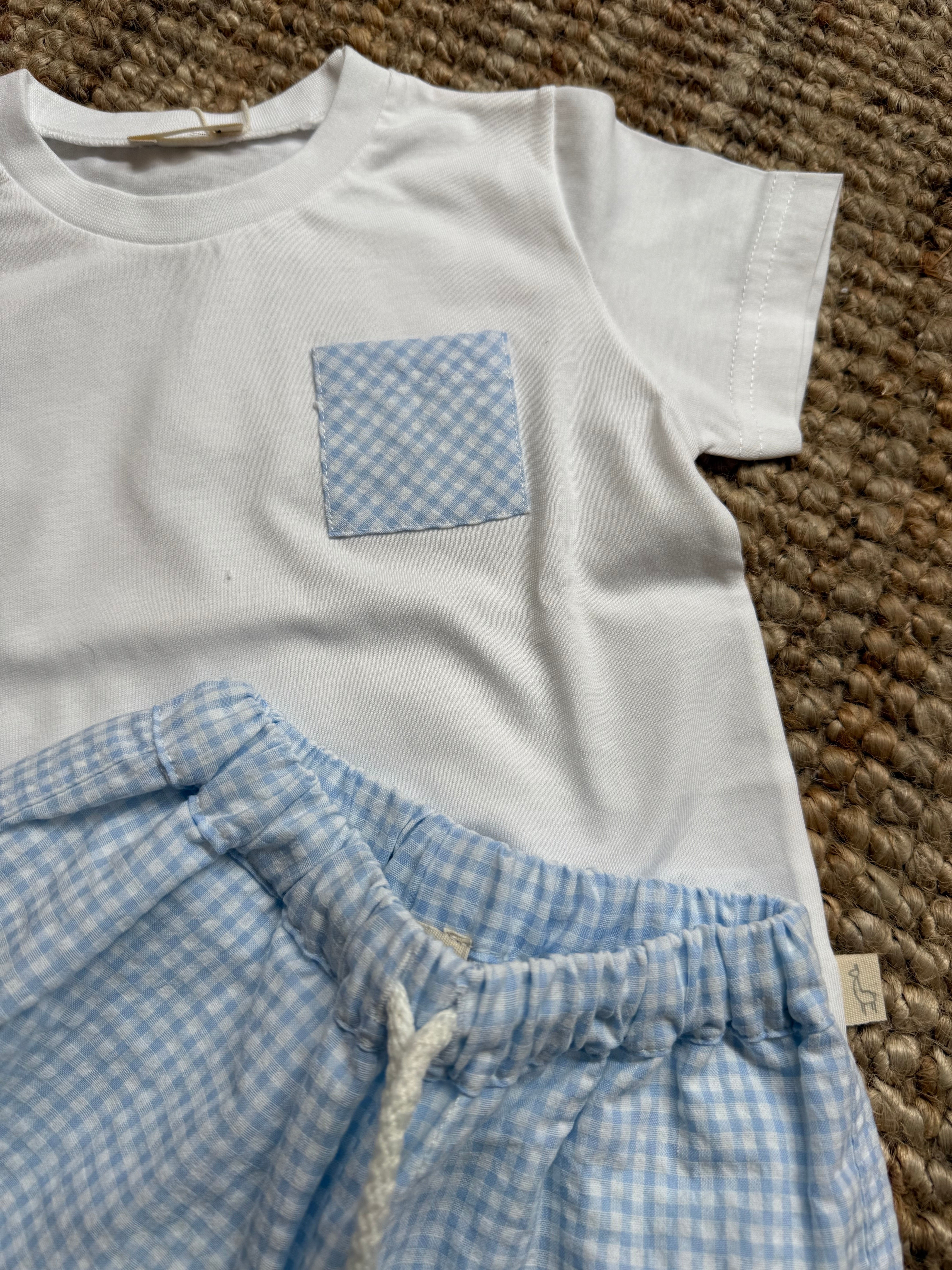 Completo t-shirt + boxer mare vichy bianco e azzurro HS70B Baby Gi