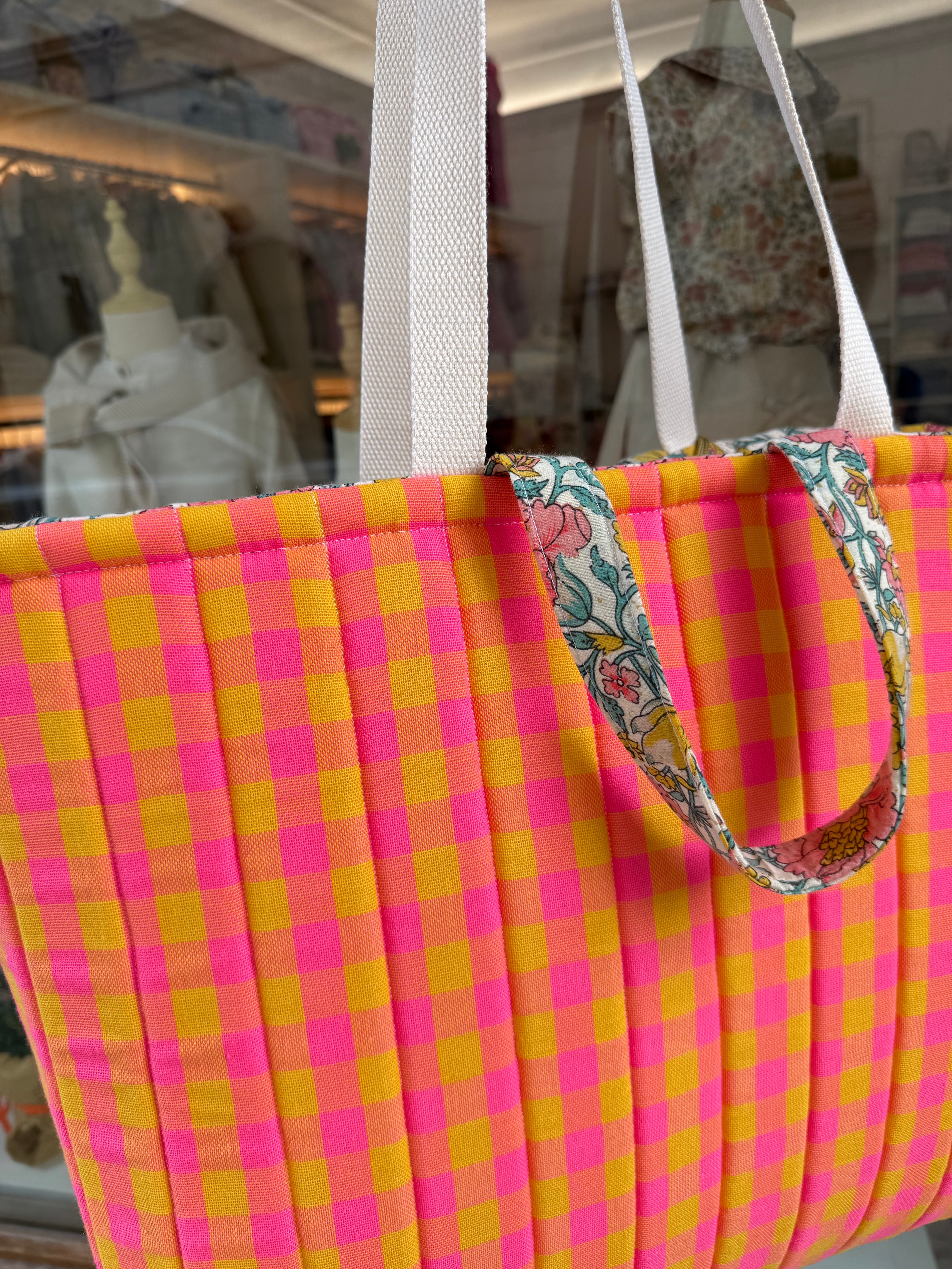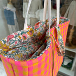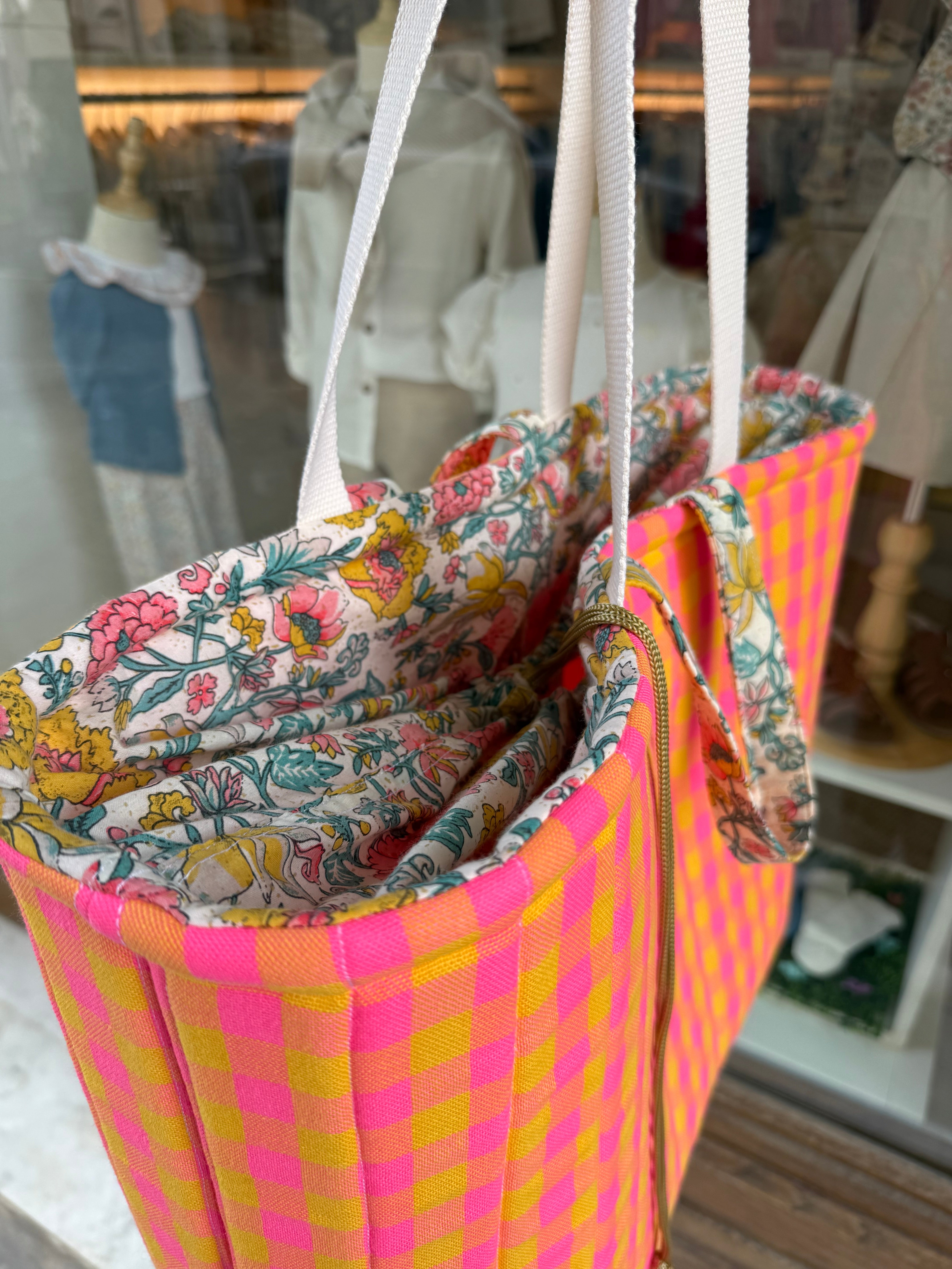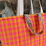 Maxi borsa LAB maxi vichy fucsia fluo e giallo + fiorellini