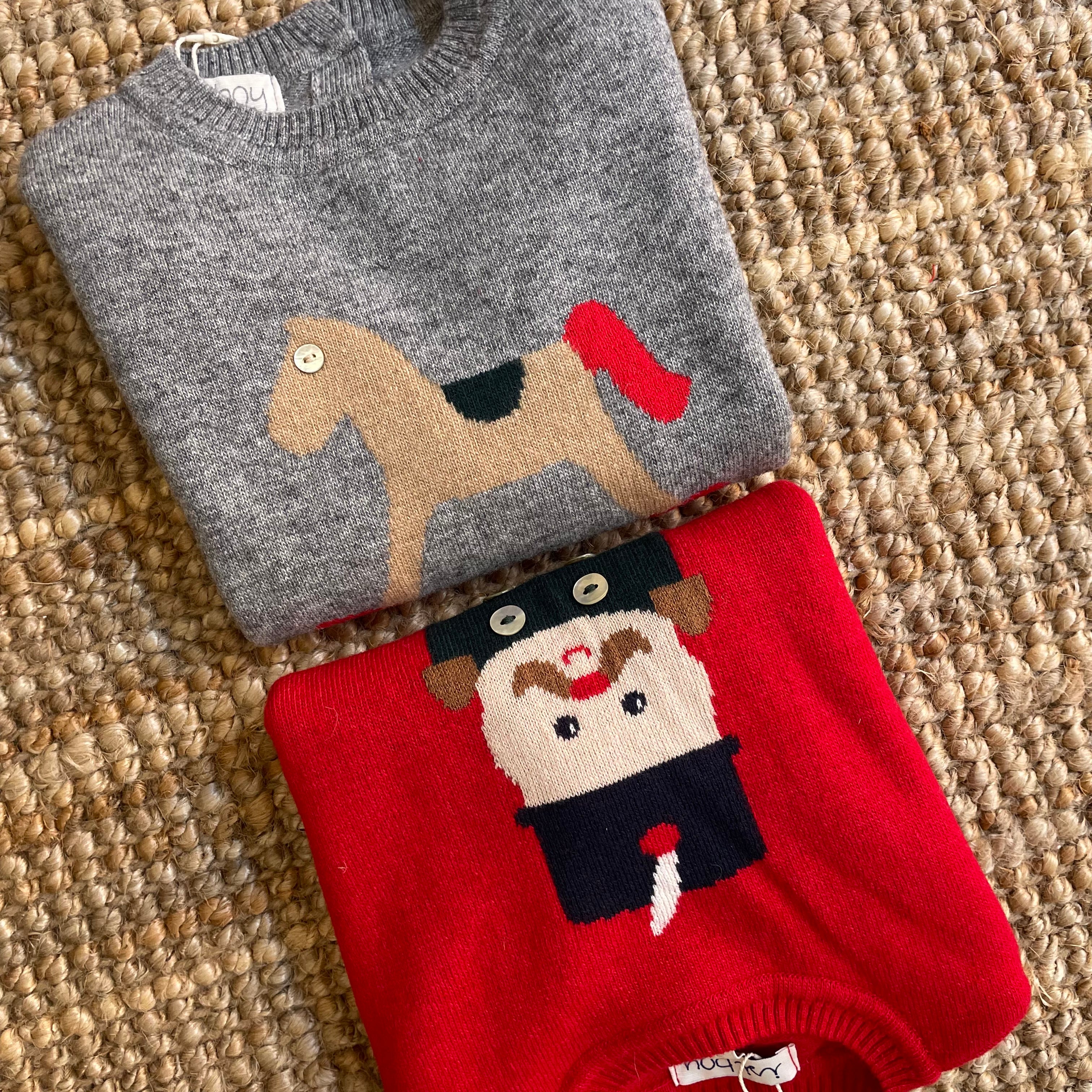 Pullover maglioncino natalizio misto cashmere con intarsio cavallino a dondolo FCCB216GFLL
