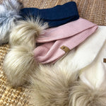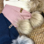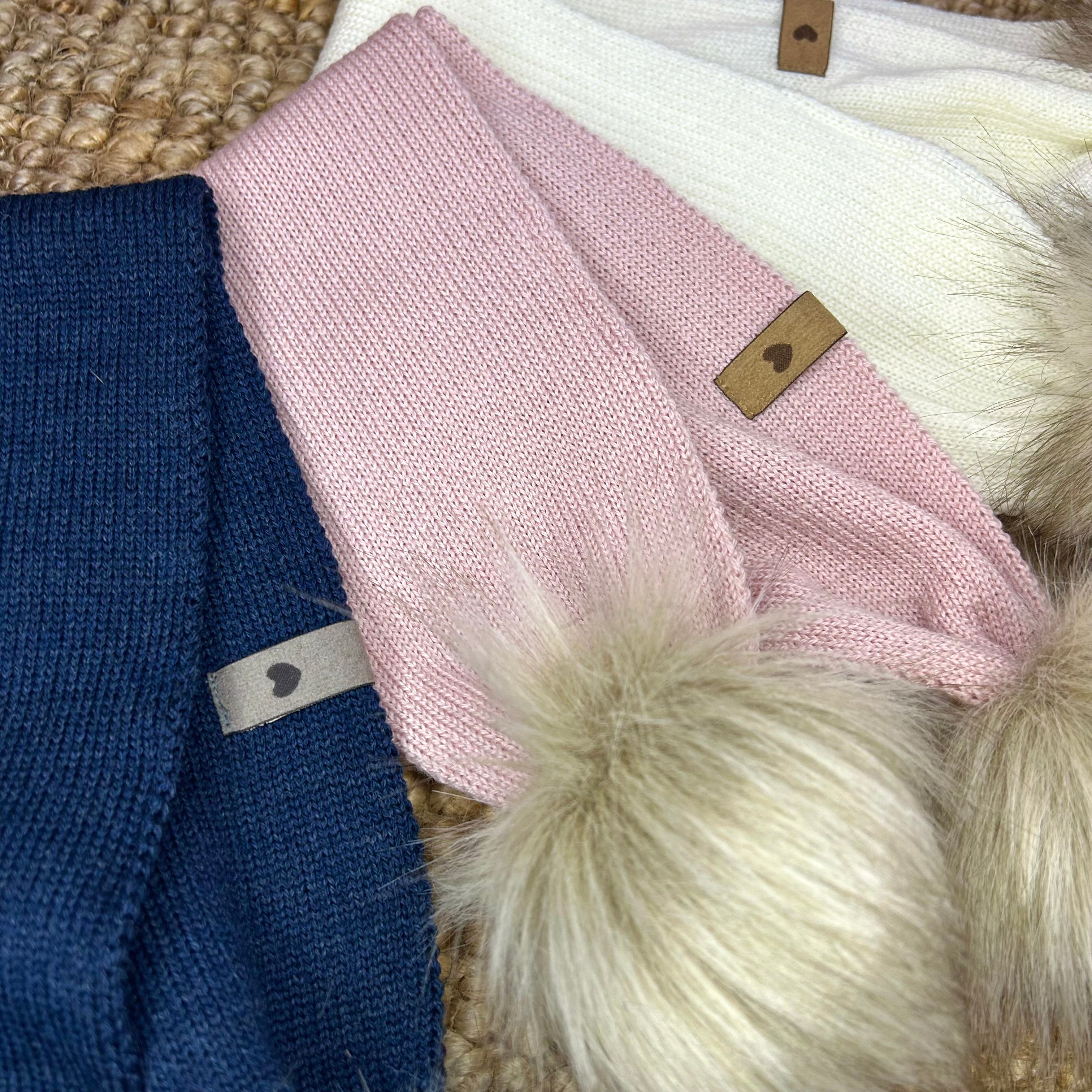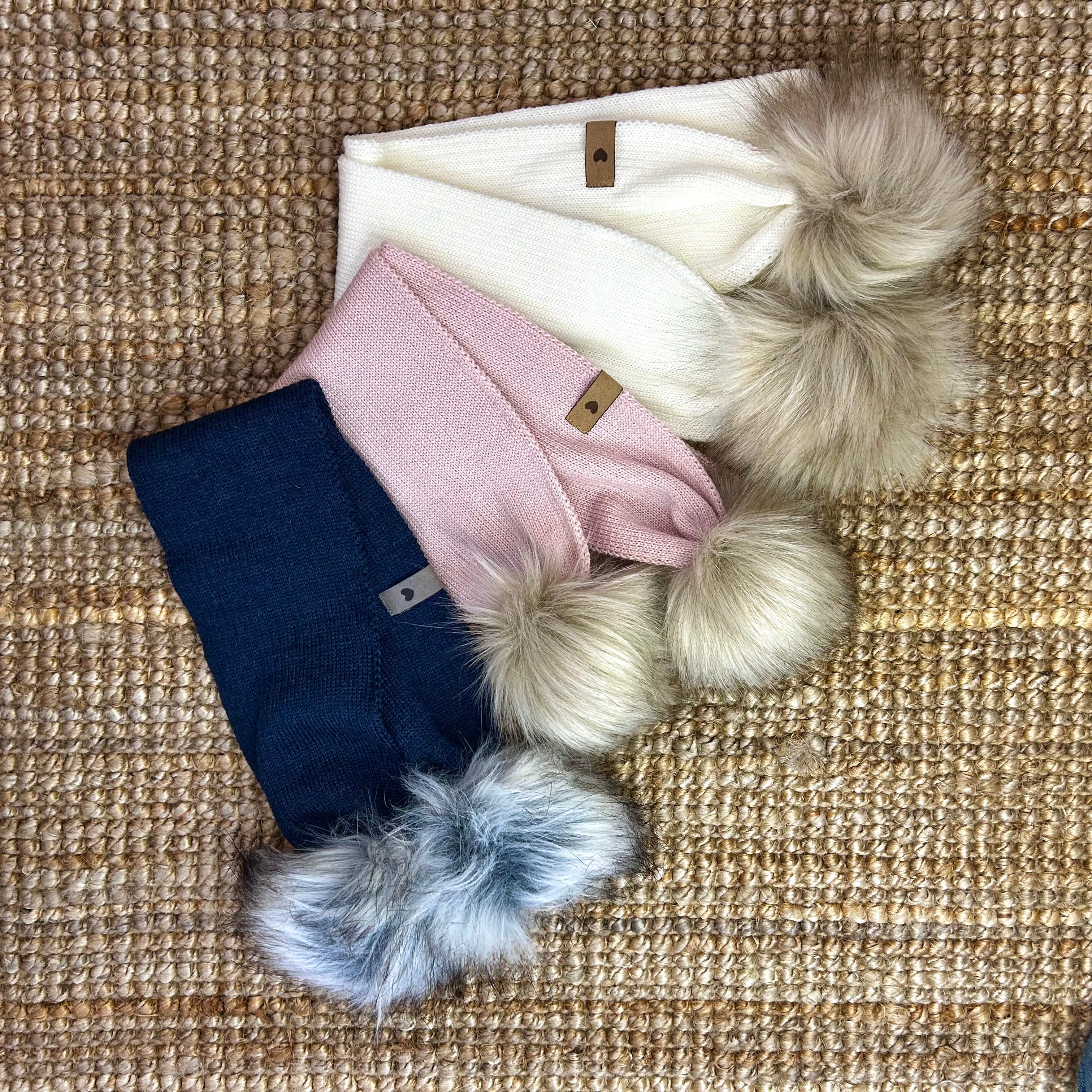 Sciarpa in pura lana merinos con pom pom in eco pelliccia