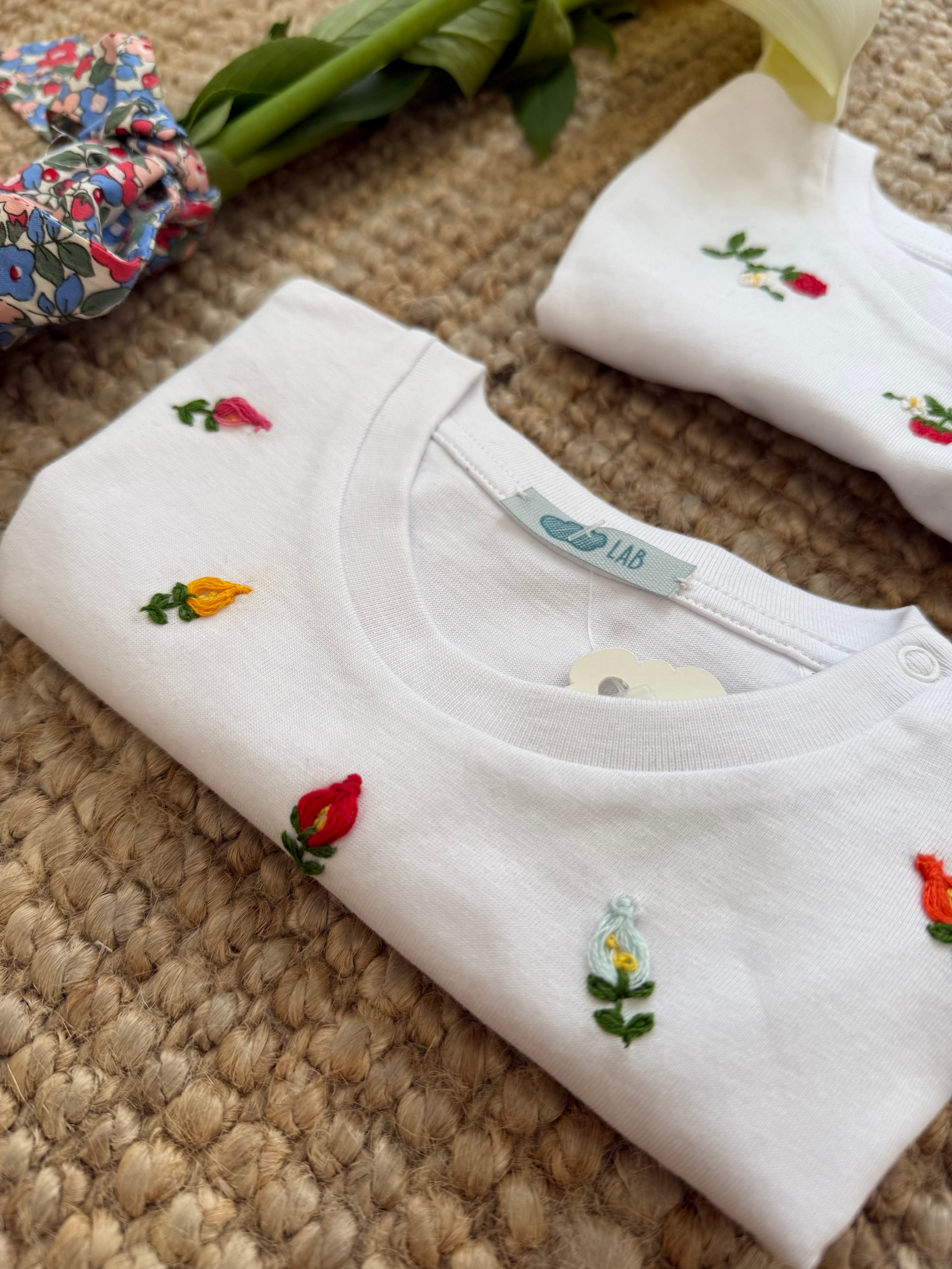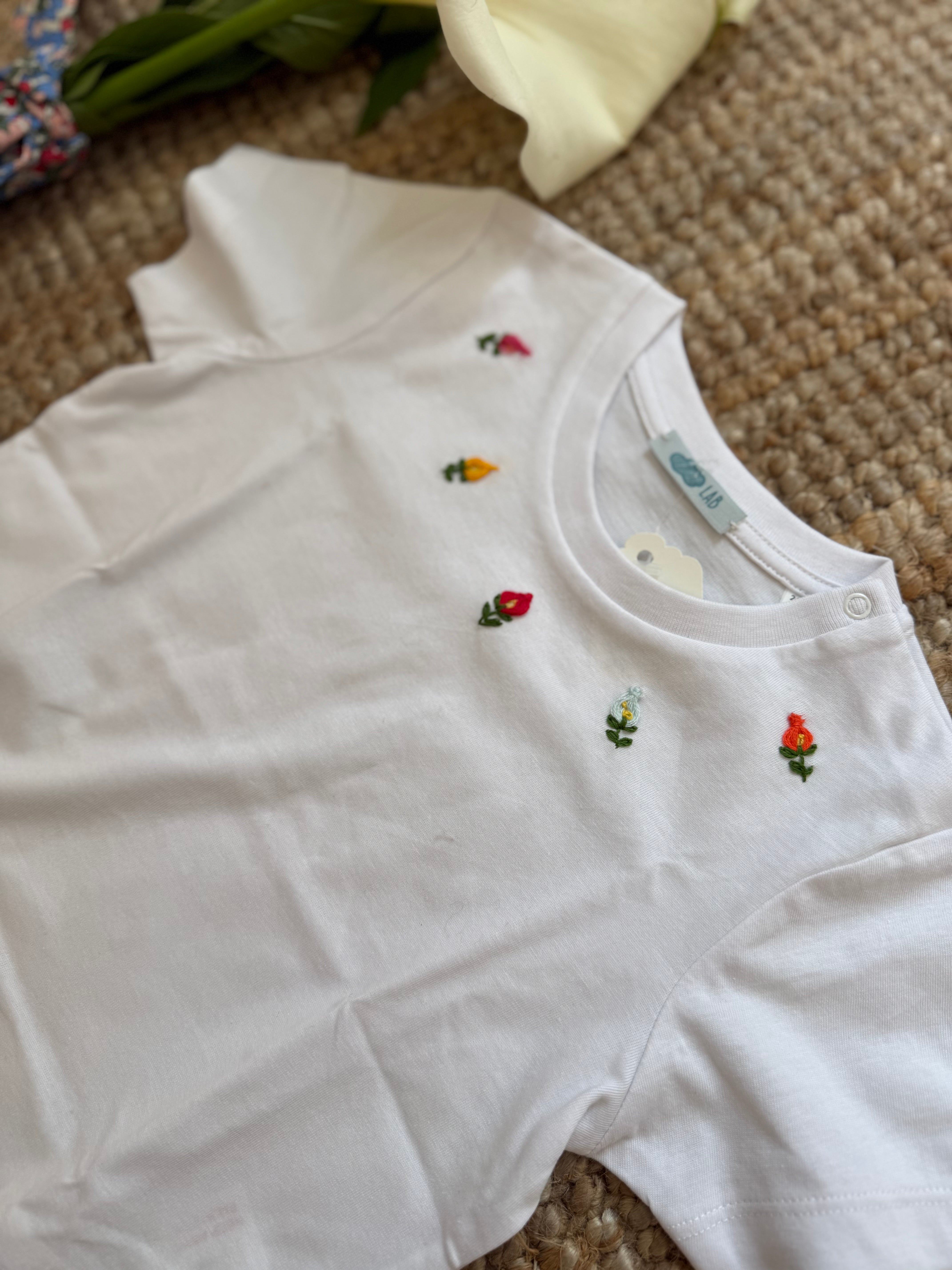 T-shirt LAB mezza manica ricamata a mano fiori colorati